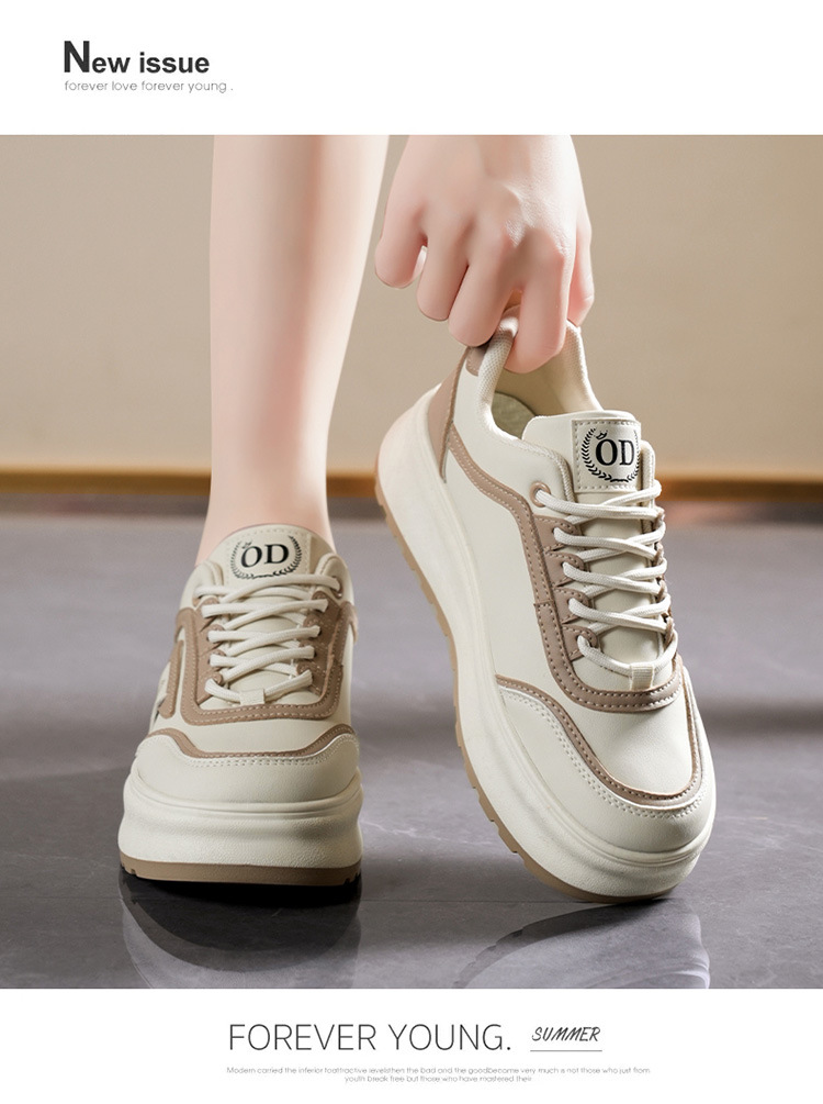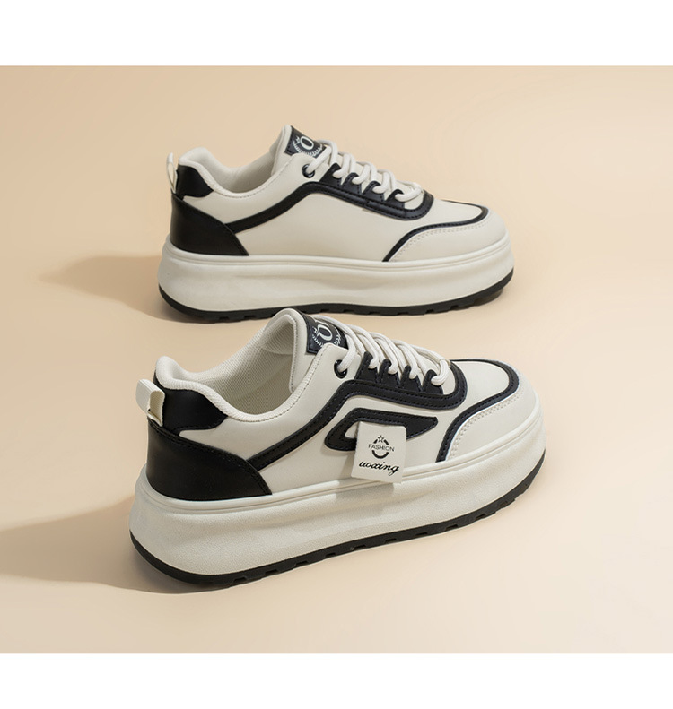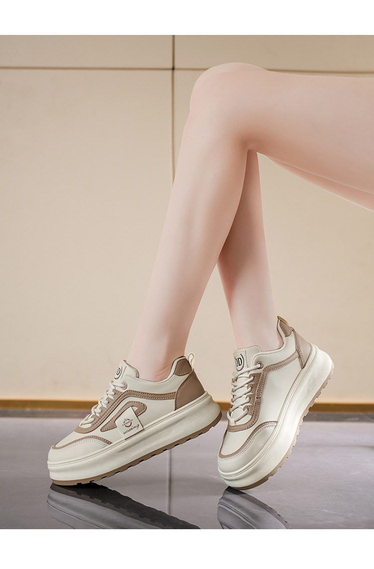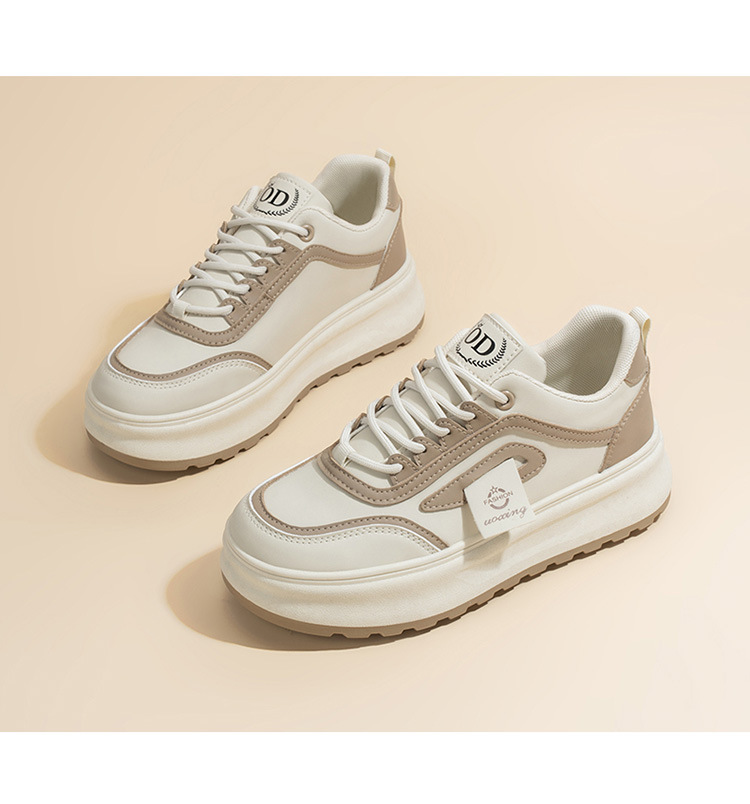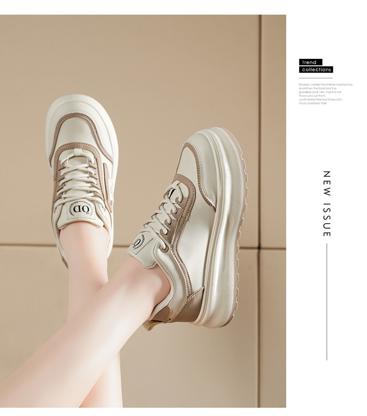 女性のための厚底スニーカー 2025 新しい秋の革通気性の白い靴軽量スポーツ学生カジュアルシューズ