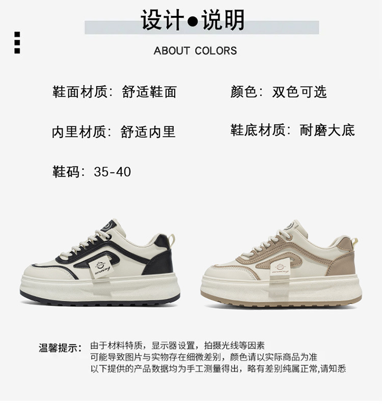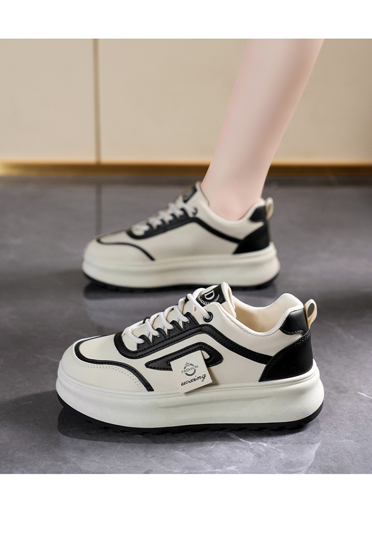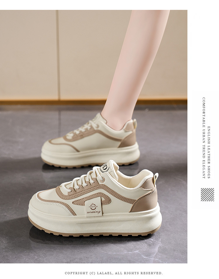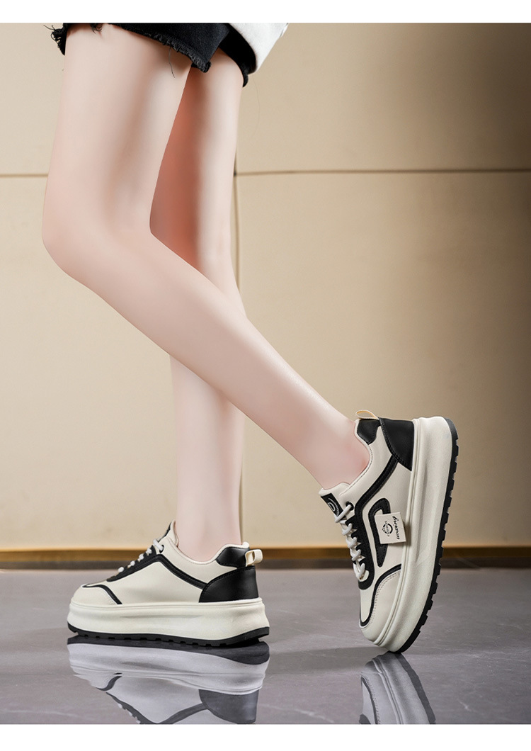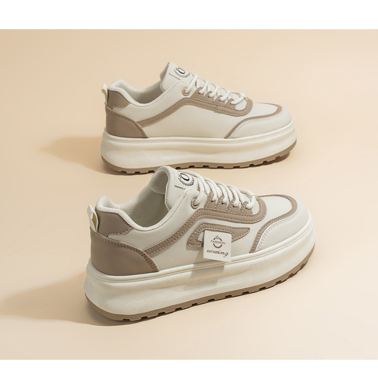 女性のための厚底スニーカー 2025 新しい秋の革通気性の白い靴軽量スポーツ学生カジュアルシューズ