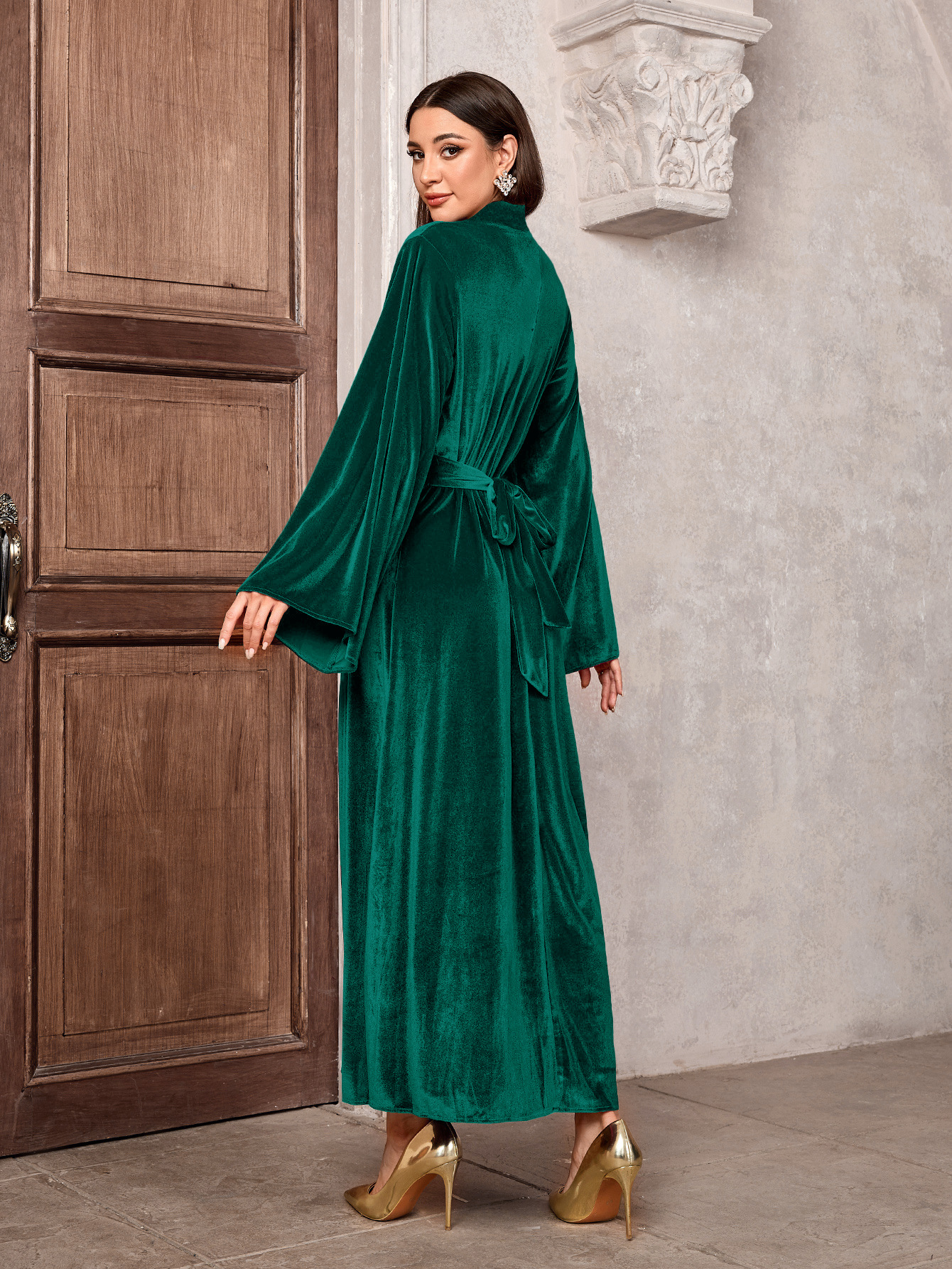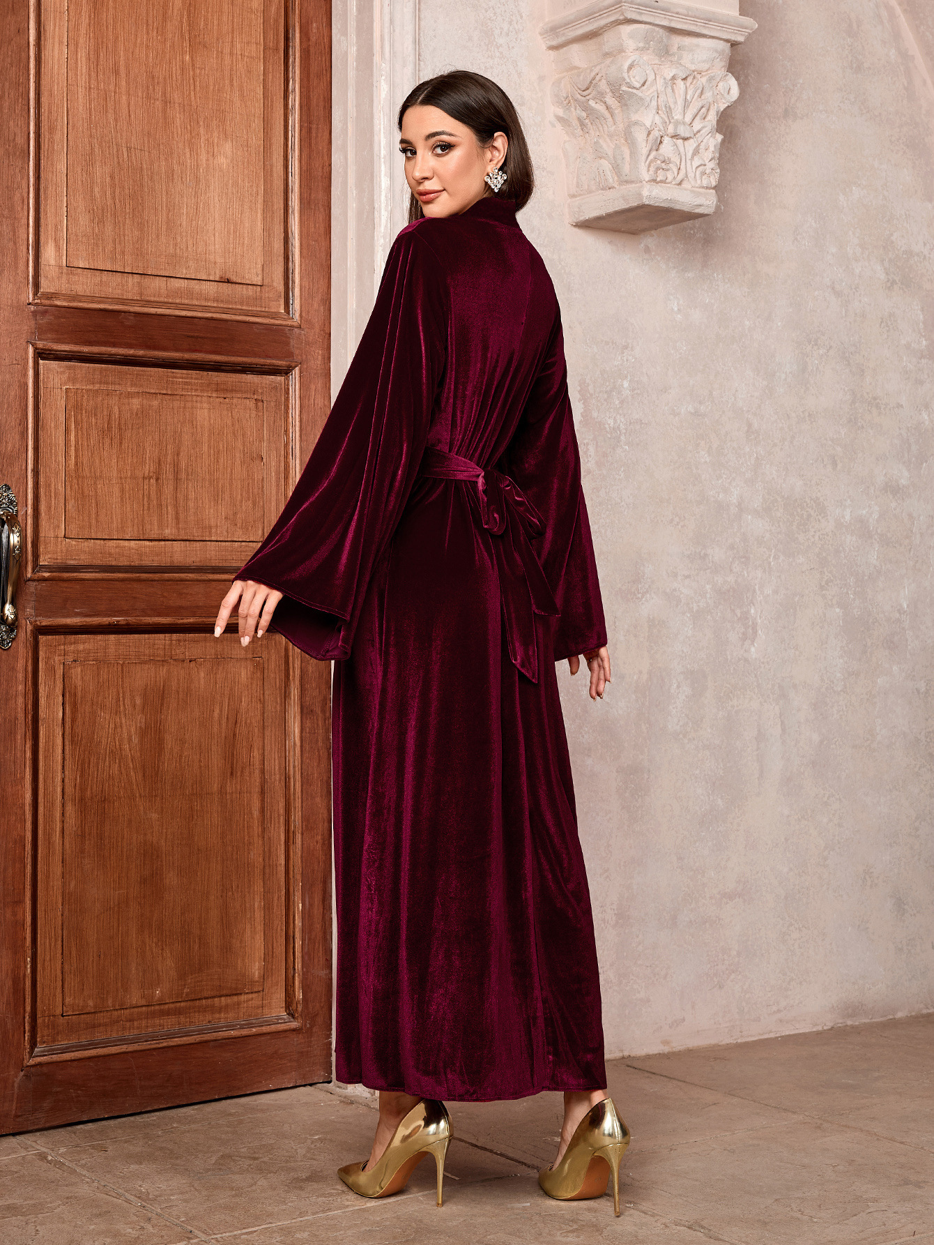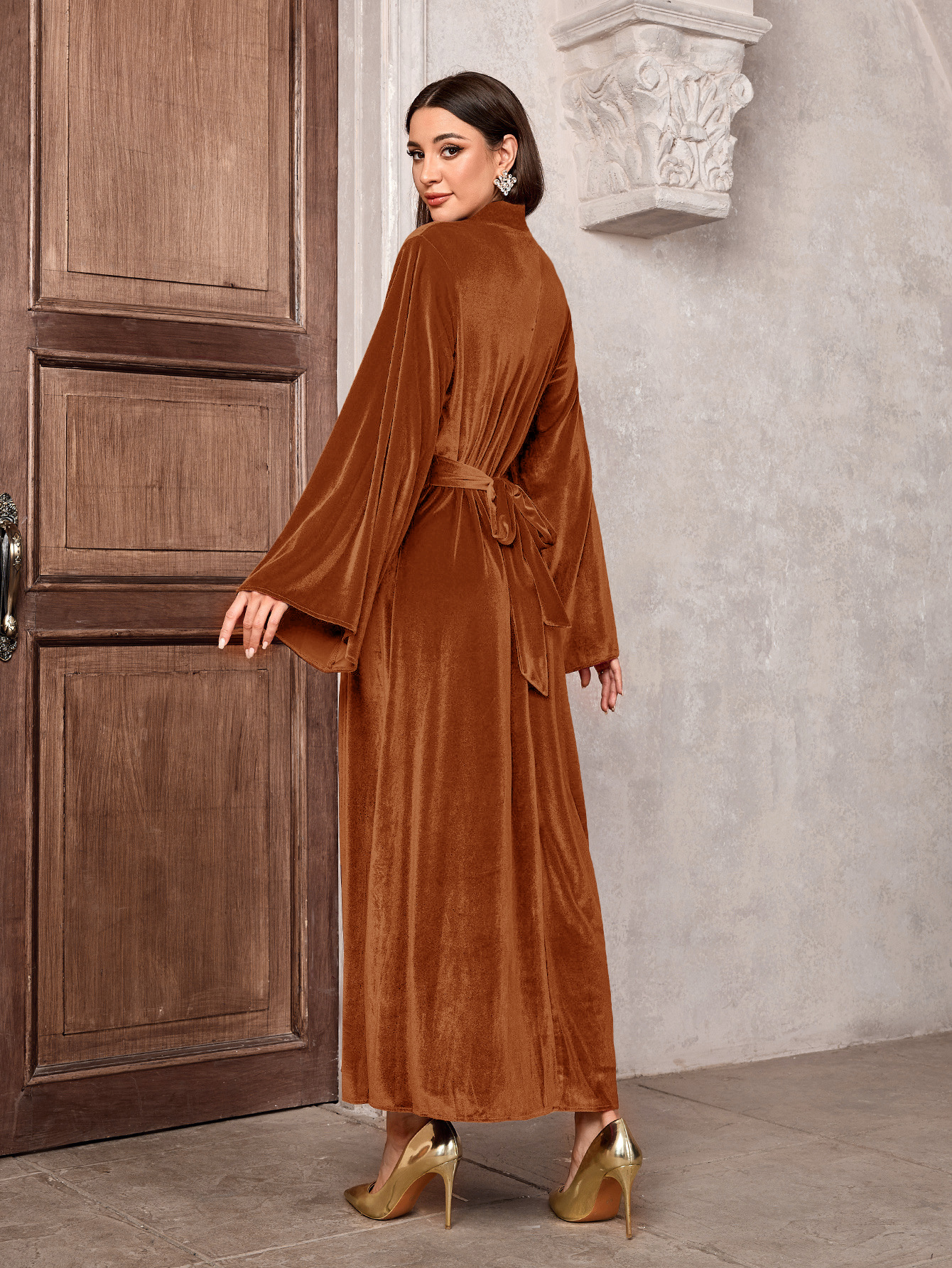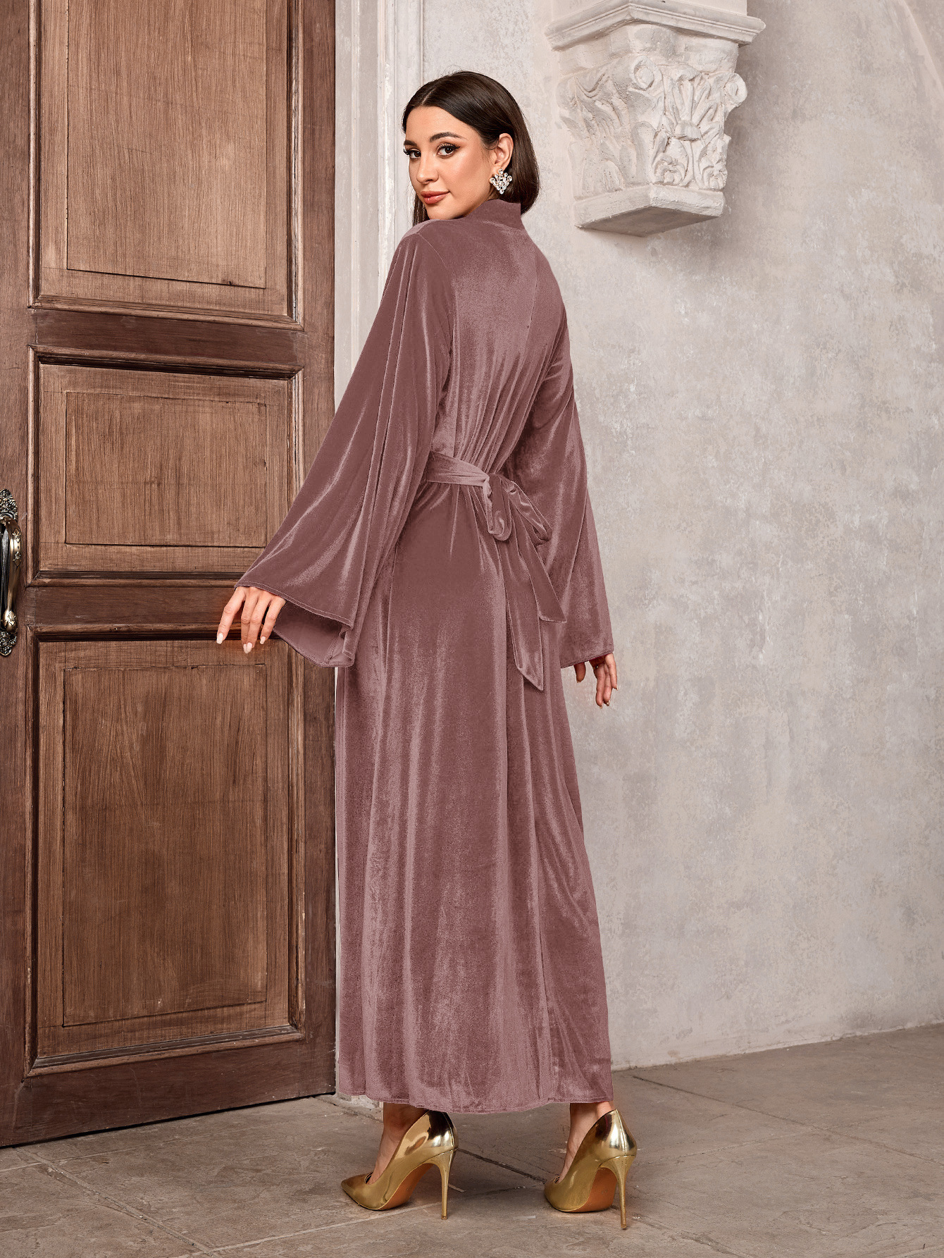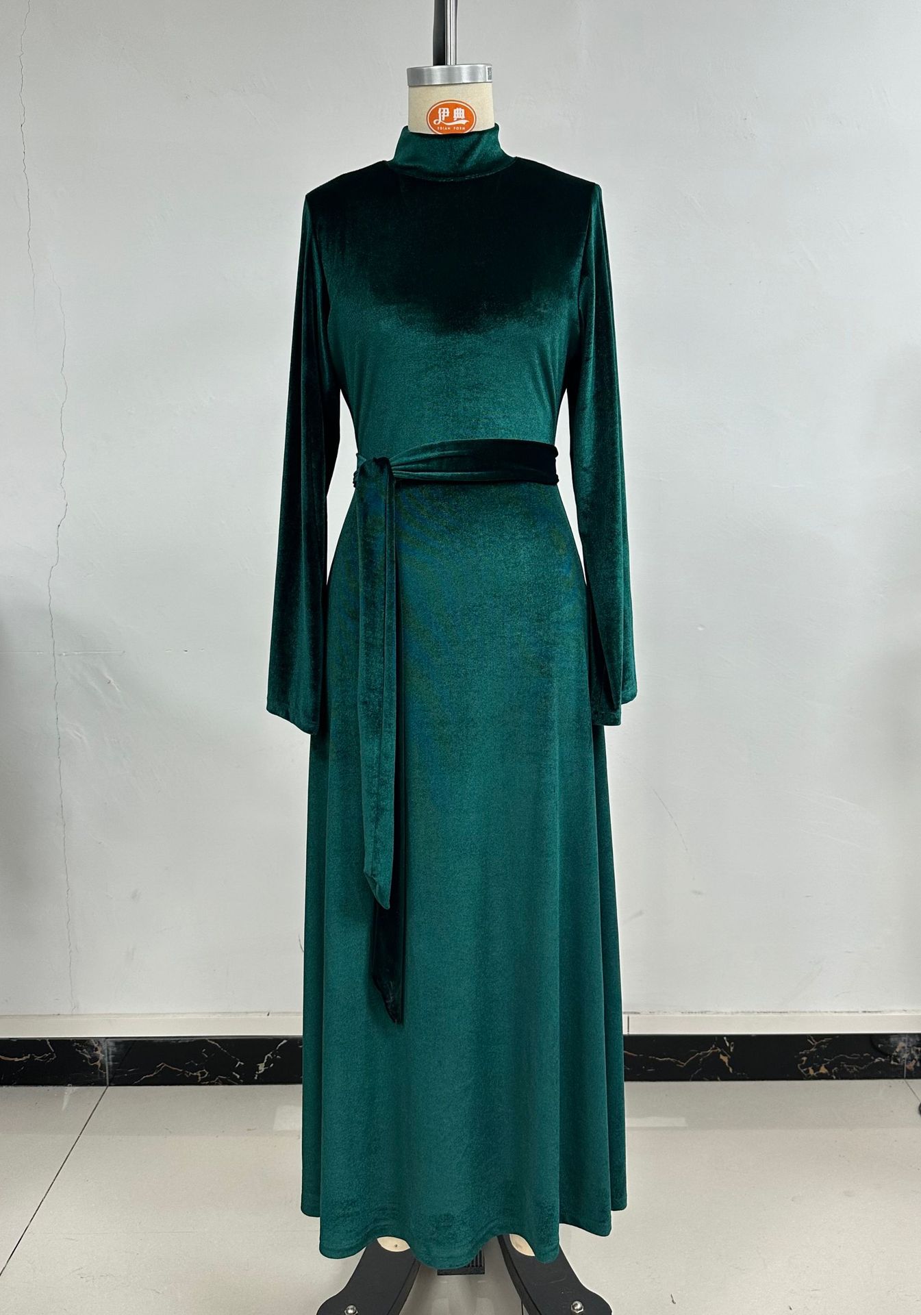 2025新型春秋中東ムスリムアラブ金ベルベットワンピースラッパ袖ベルトファスナー気質