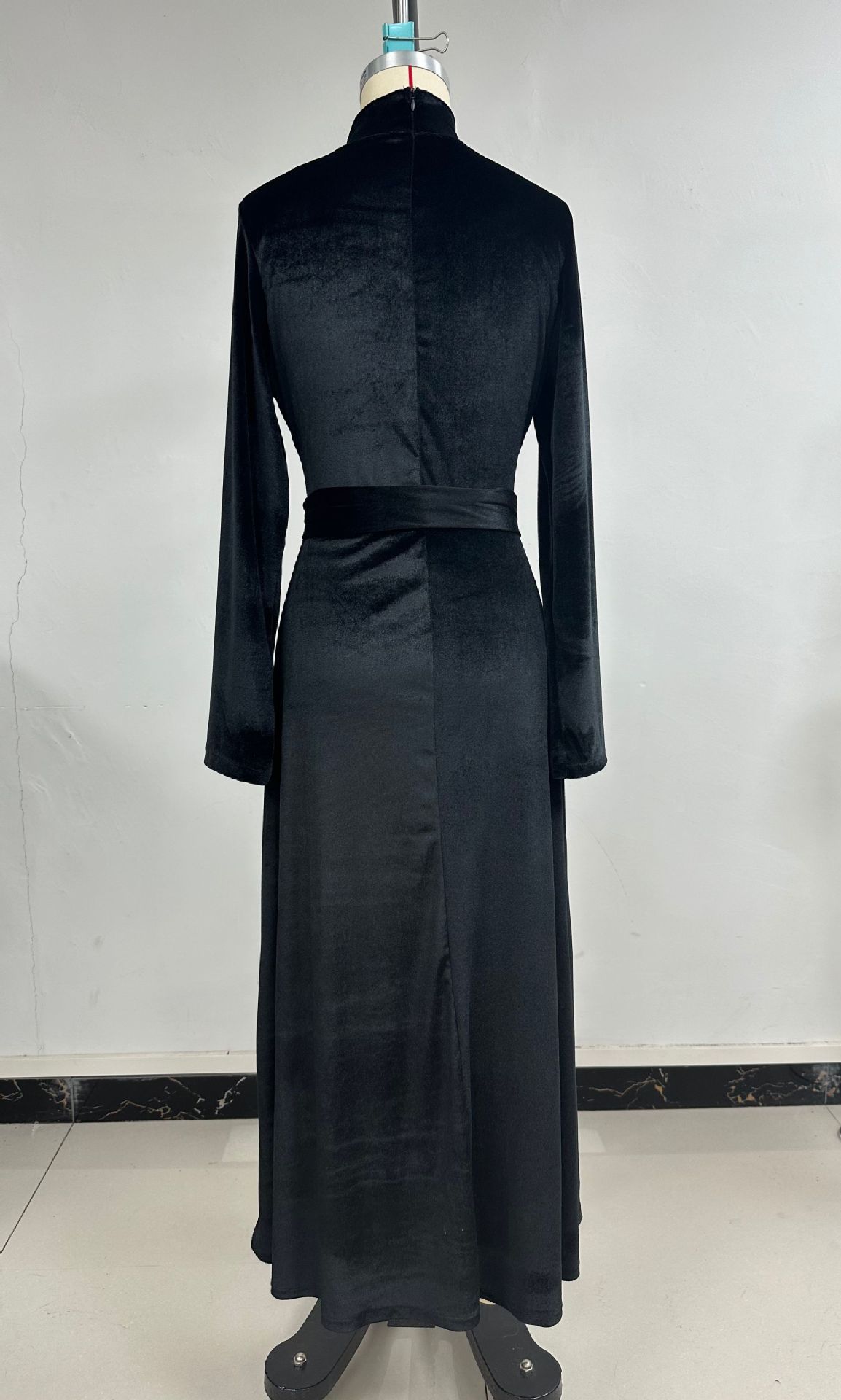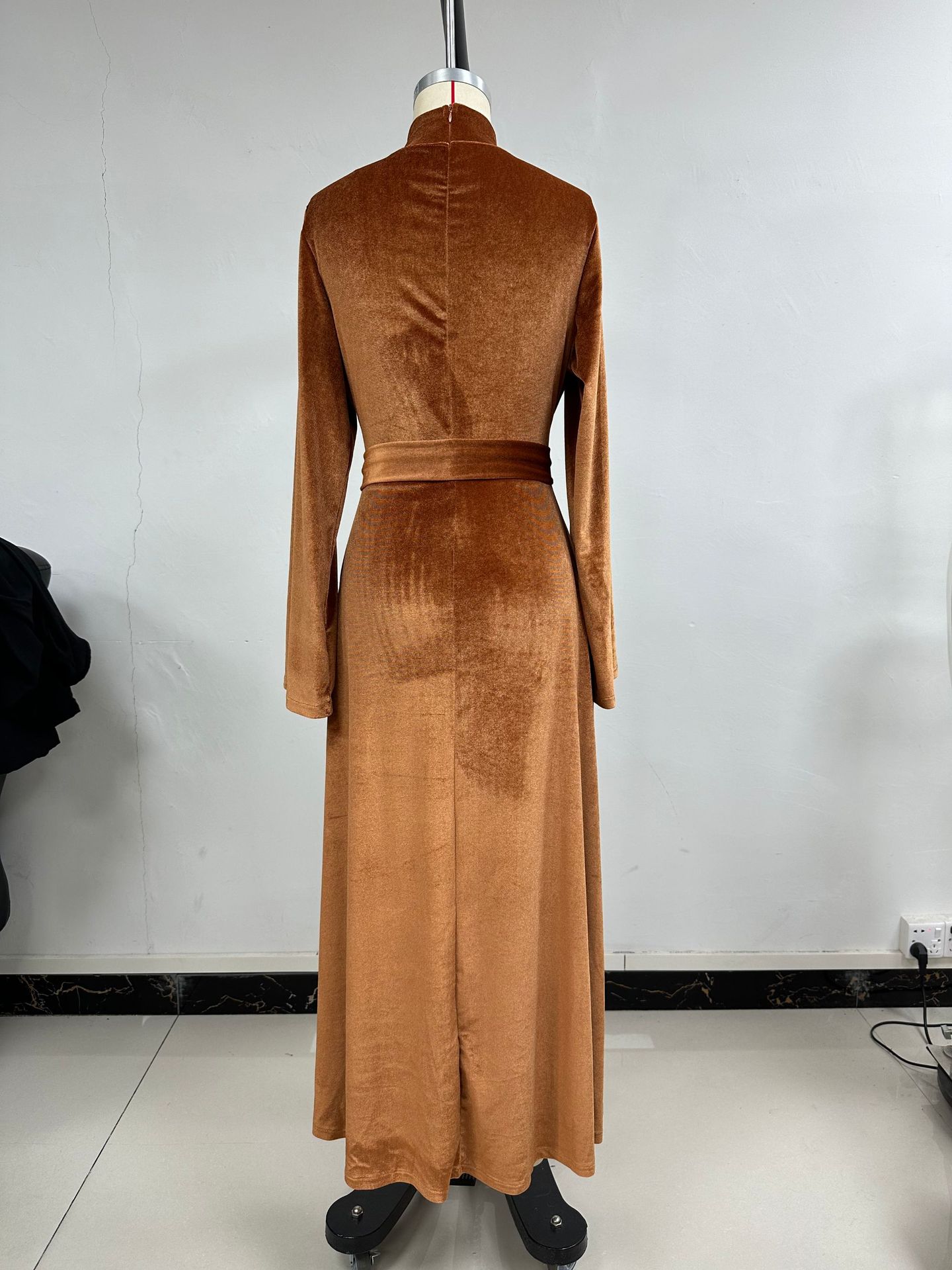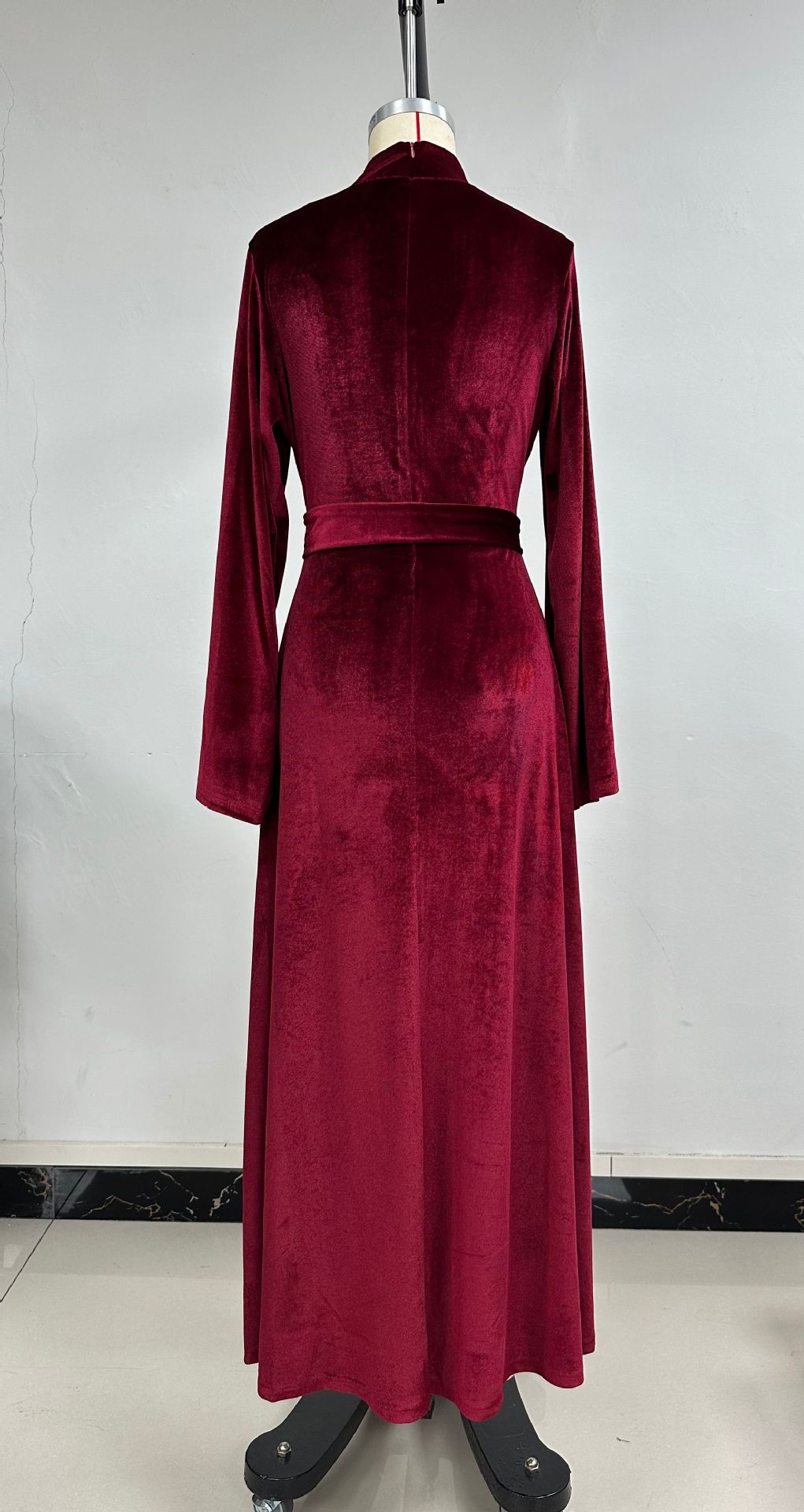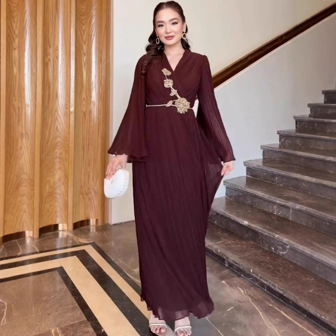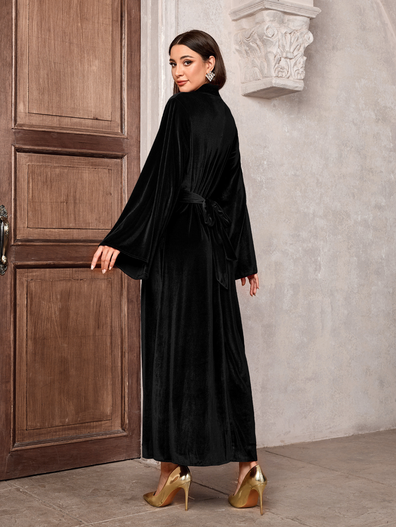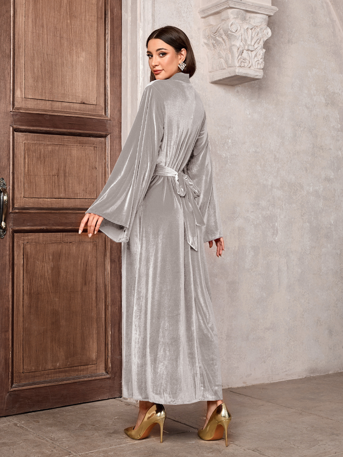 2025新型春秋中東ムスリムアラブ金ベルベットワンピースラッパ袖ベルトファスナー気質