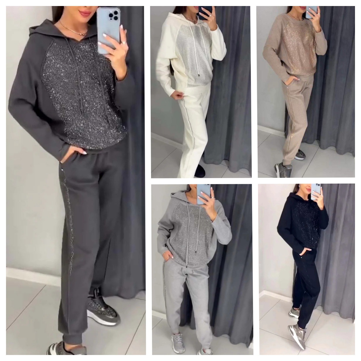 2024欧米クロスボーダー春秋婦人服起爆ファッションカジュアルフード付きスウェットスポーツスーツ