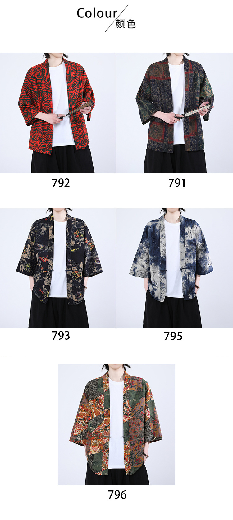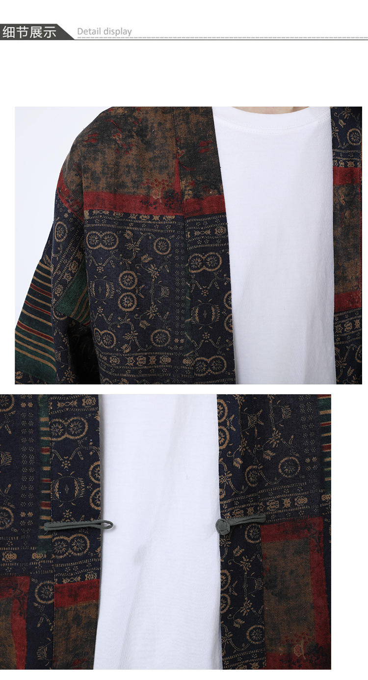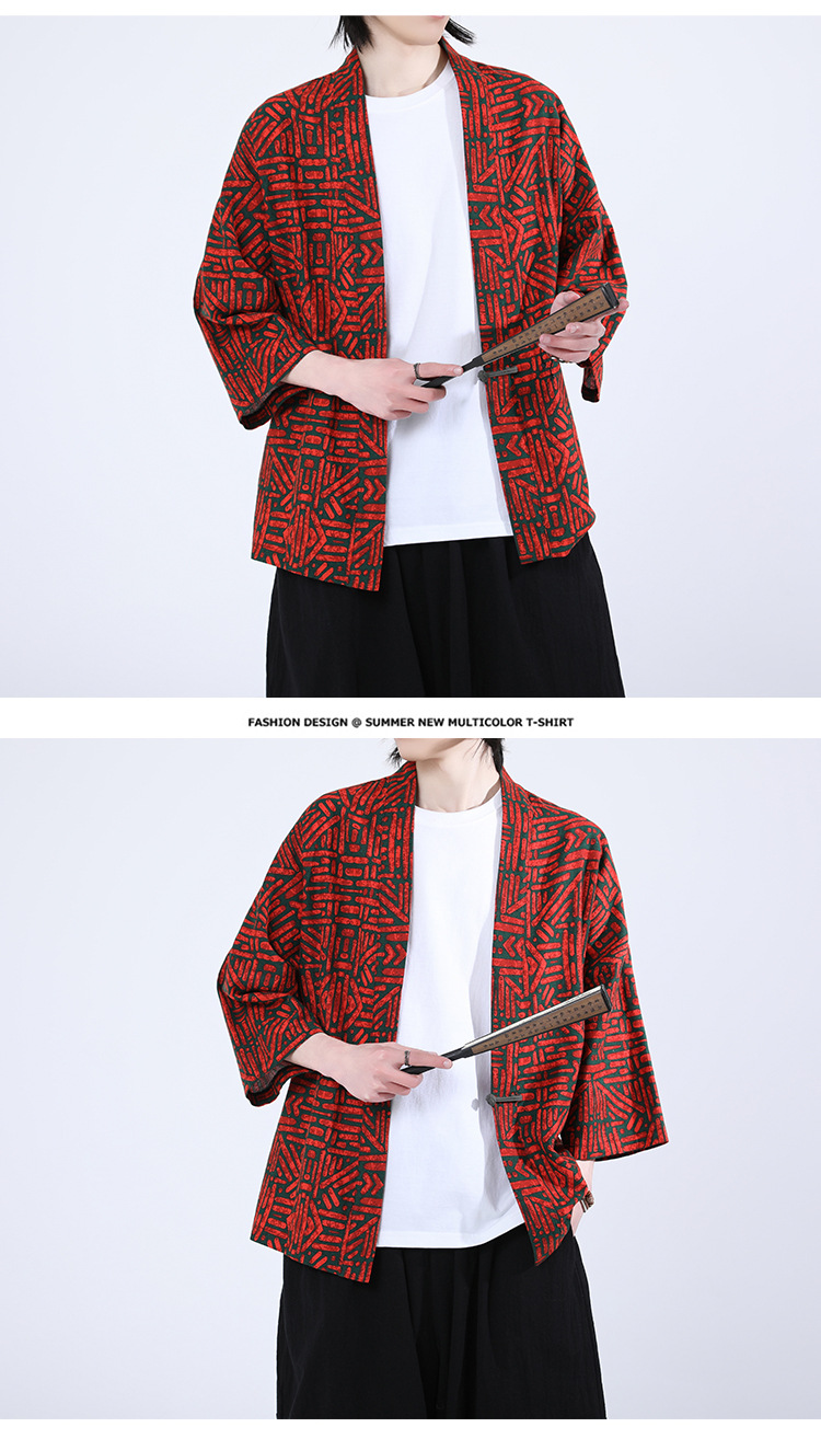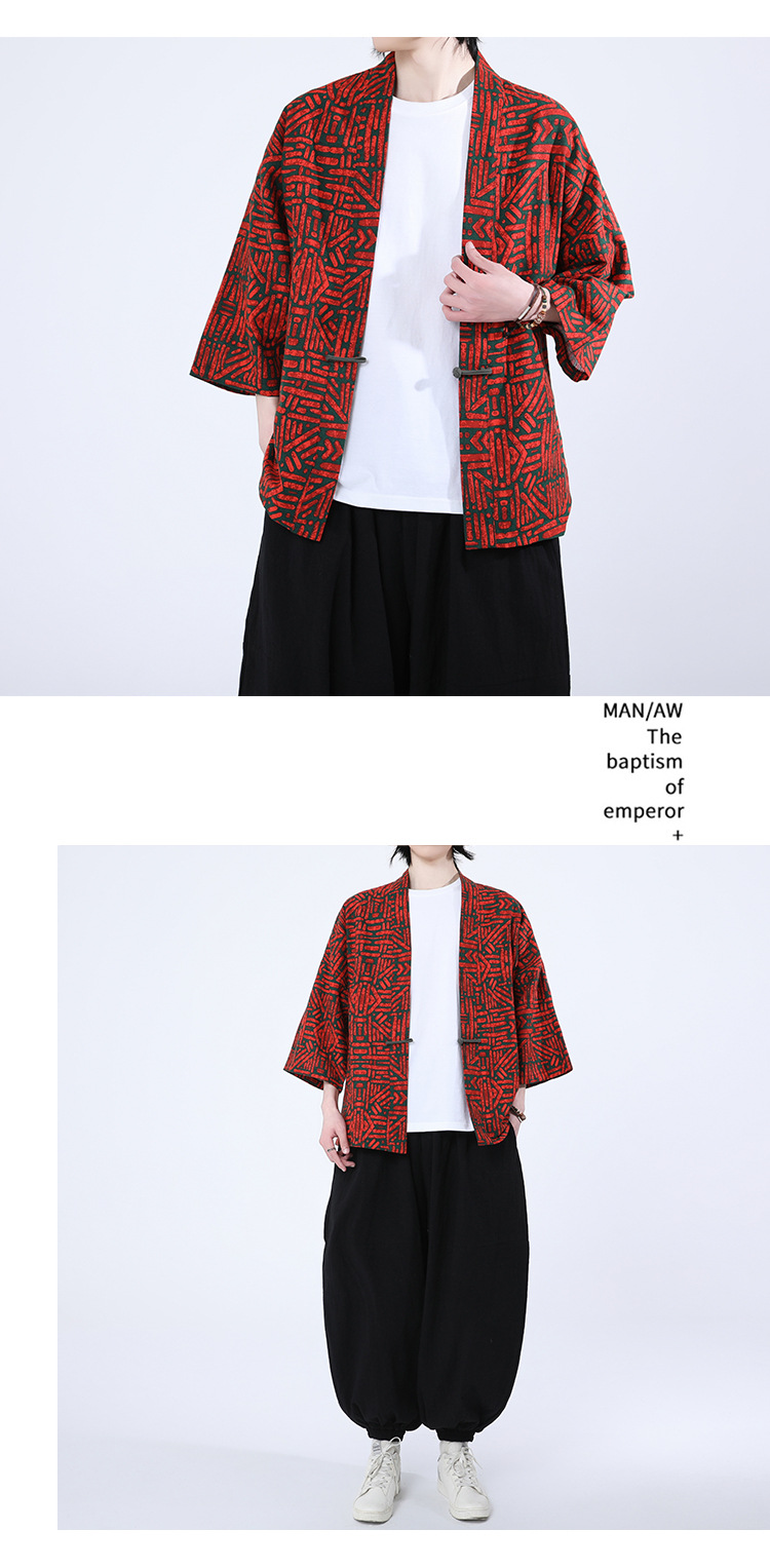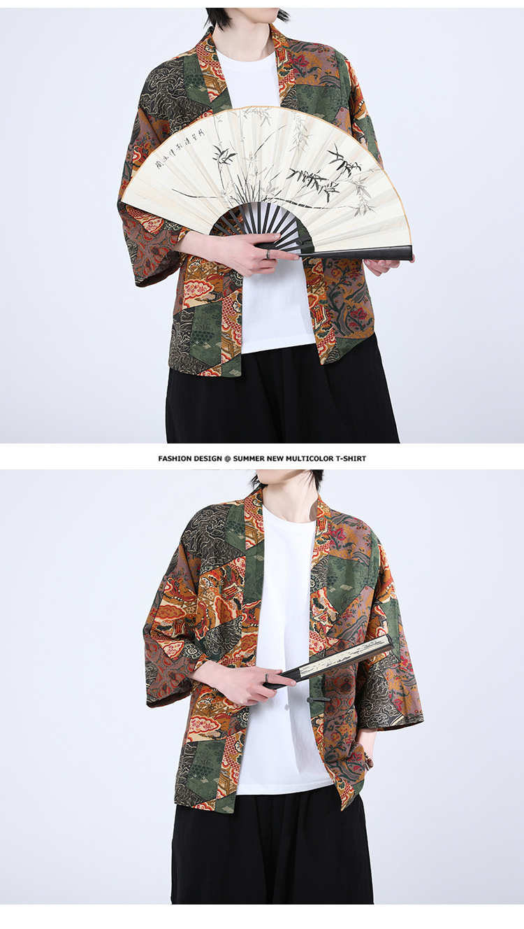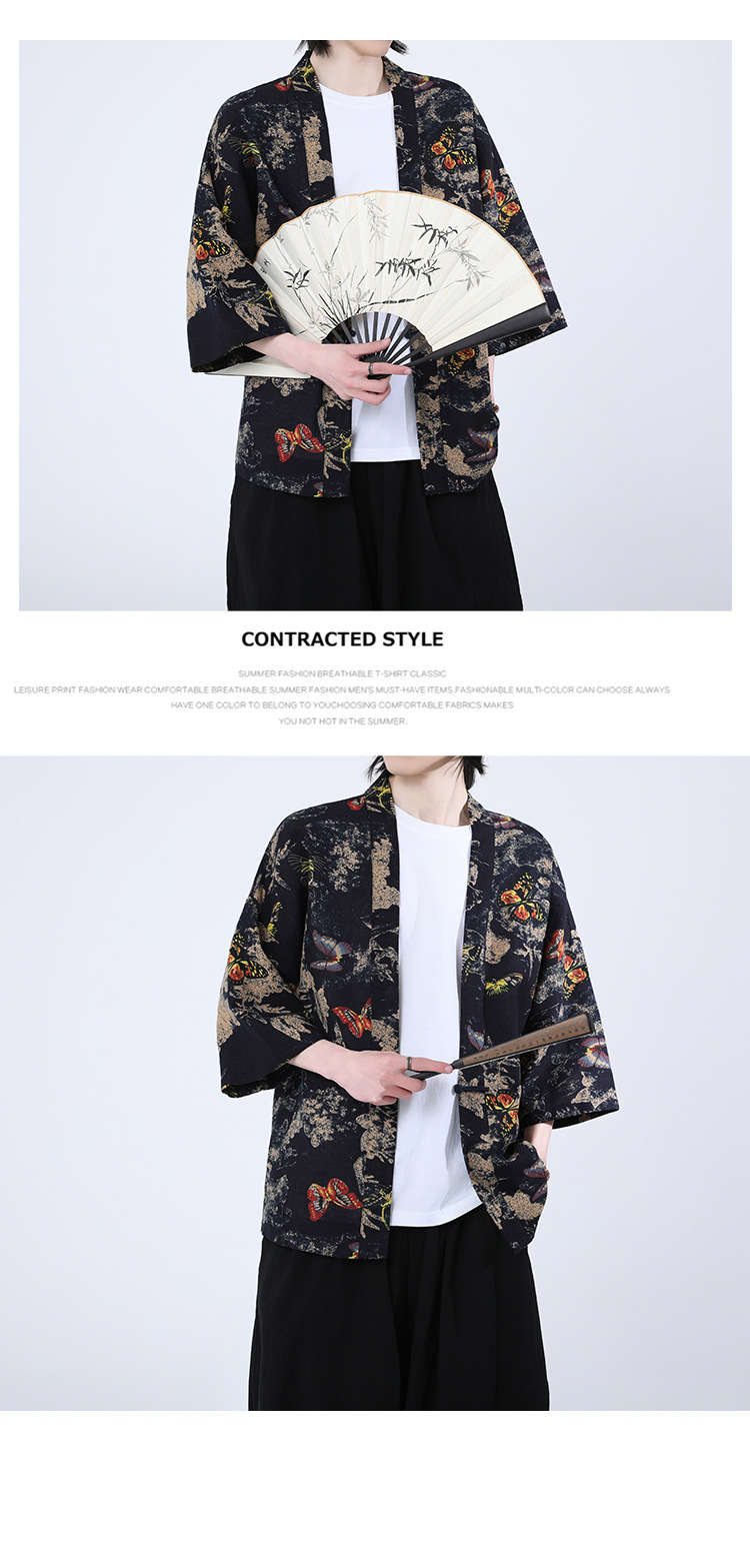 夏の男性用日焼け止め漢服、レトロな中国風カーディガン、プリント入り唐装トップス、男性用ゆったりとした盤扣付き道服ジャケット