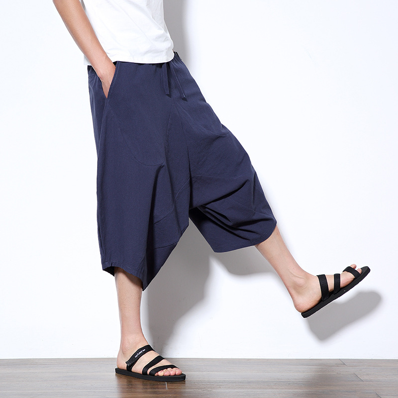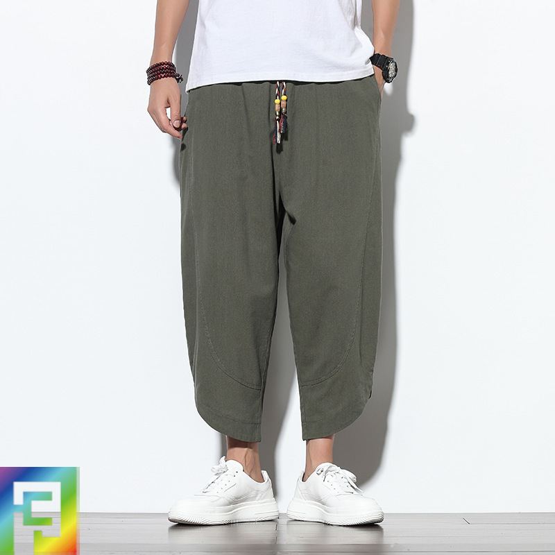 2022中国風綿麻七分ハーレムズボン日本式カジュアル紳士服ワイドレギンス