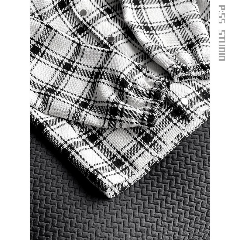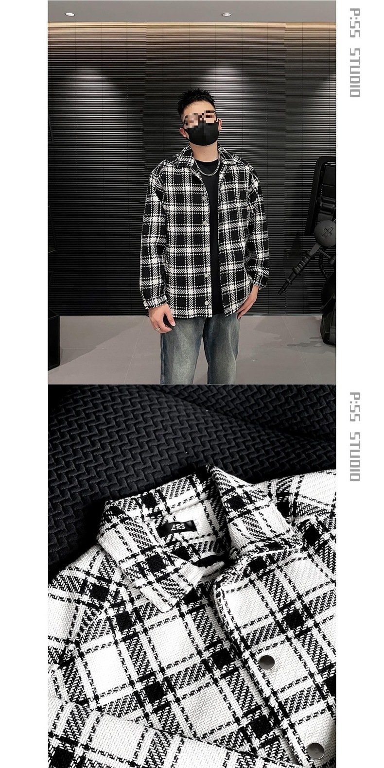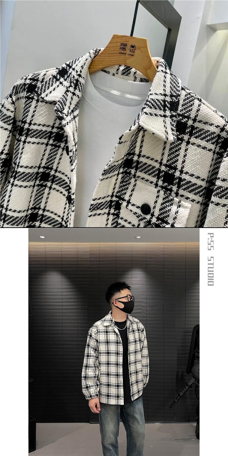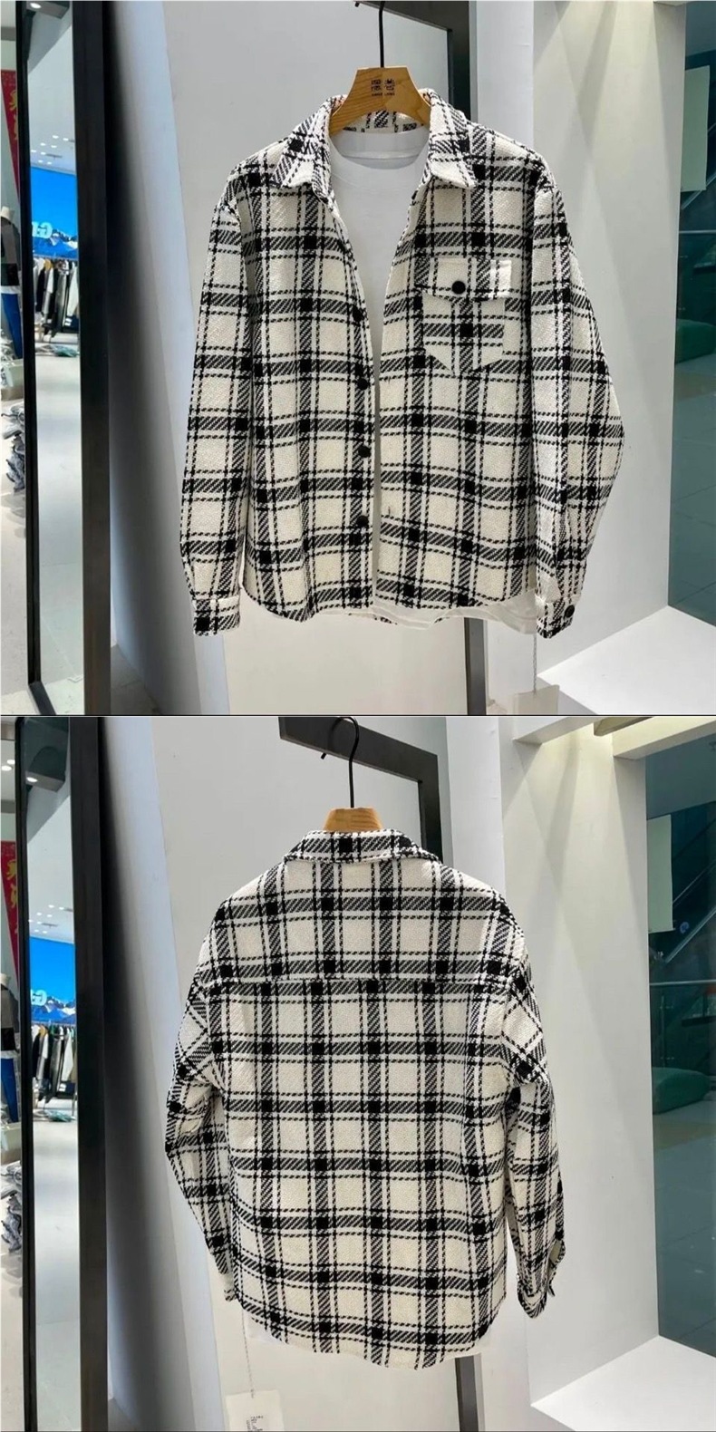 春秋ファッションの定番格子カップルの同じシャツのコートがゆったりしています。
