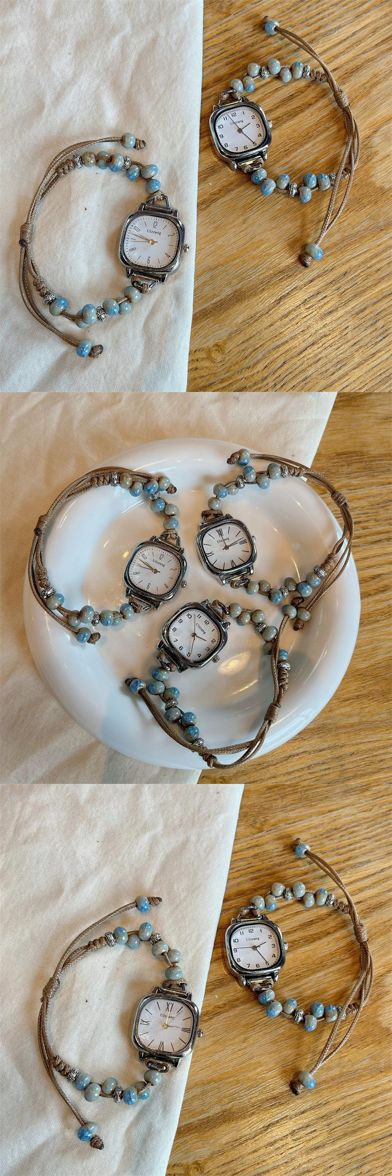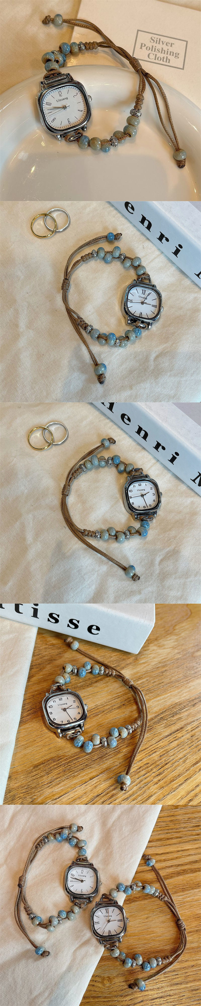 セラミックビーズロープブレスレットウォッチレディースレトロエスニックスタイルデザインブレスレット高価値ニッチパーソナライズブレスレット