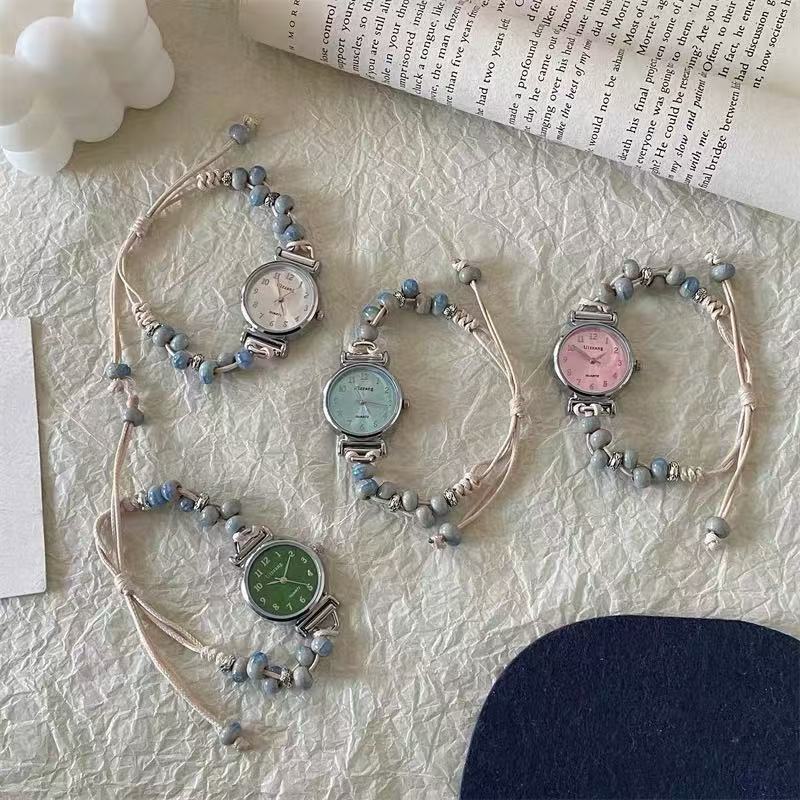 新款ins风小众轻奢串珠手绳手表女生高颜值简约百搭石英表学生党