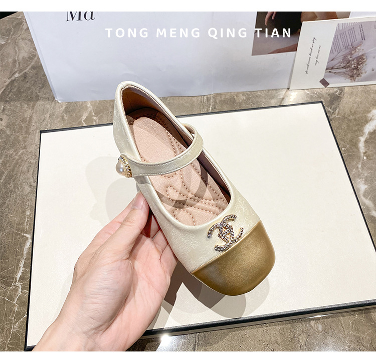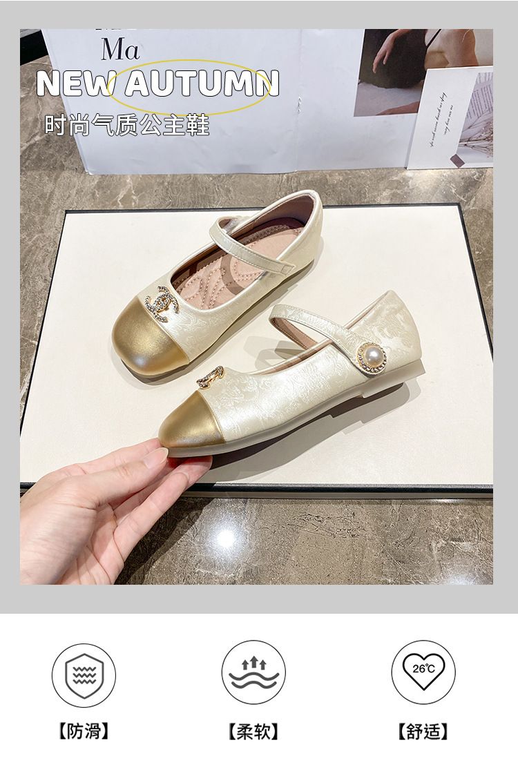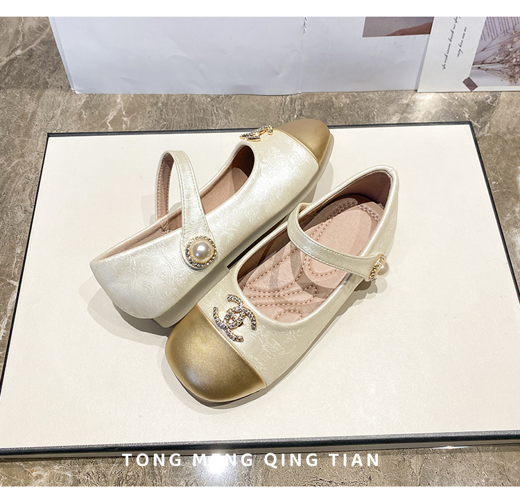 女の子ハイヒール2025春の新しい子供の靴の柔らかい底の女の子は王女の靴の女の宝の靴を演じます。