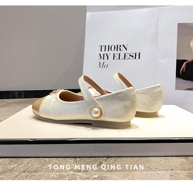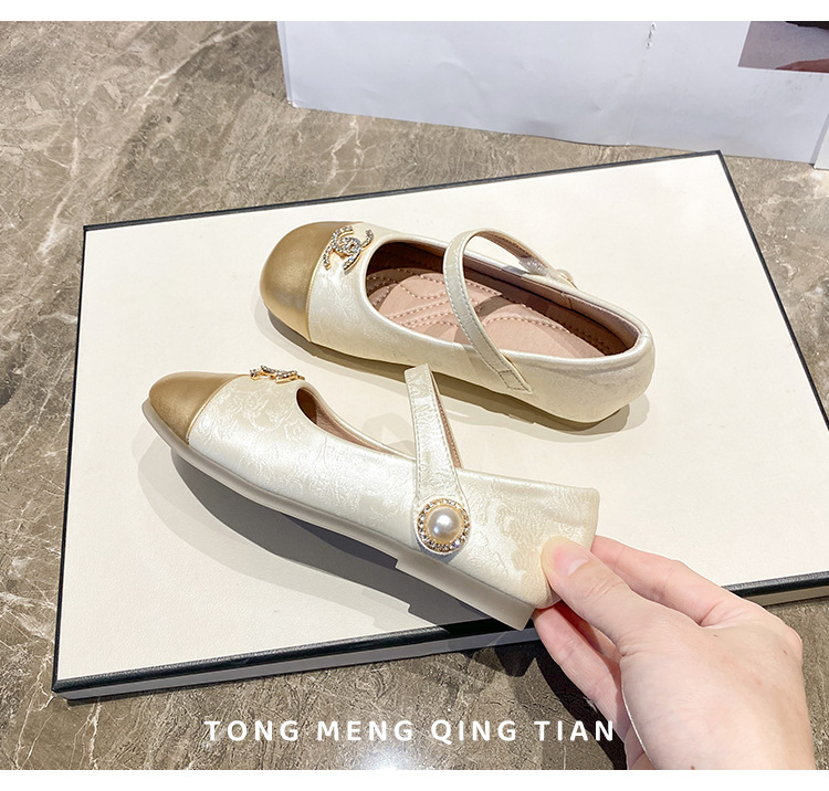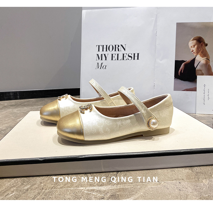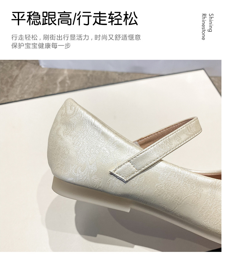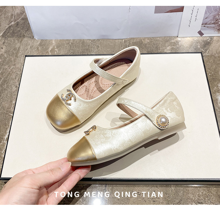 フランスのツバキの花2025の新型の春と秋の柔らかい底の小さい革靴の新しい中国式はチャイナドレスの靴の女の子の王女の靴を配合します。
