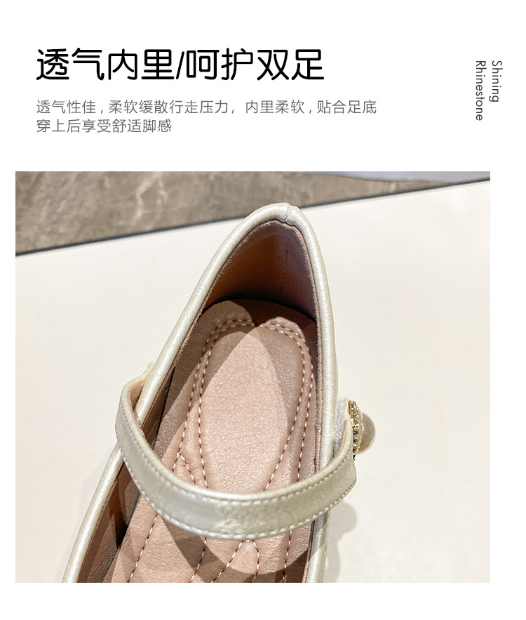 女の子の王女の靴のハイヒールの2025新型のドレスの靴の復古の太いショーの小さい方の頭の浅い口のメアリーの珍の靴
