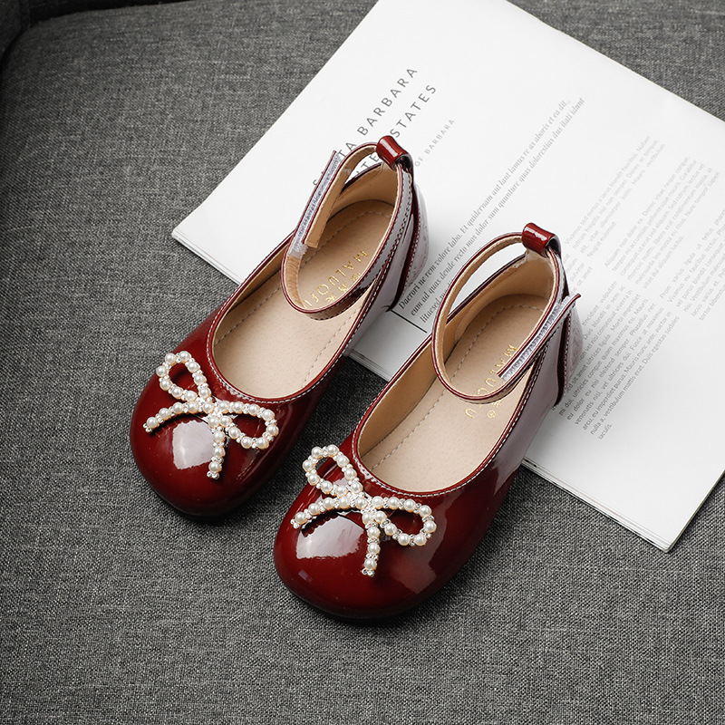 女の子用プリンセスシューズ、ソフトソール、子供用ハイヒール、2024春秋新作、おしゃれなリボン付き子供用革靴