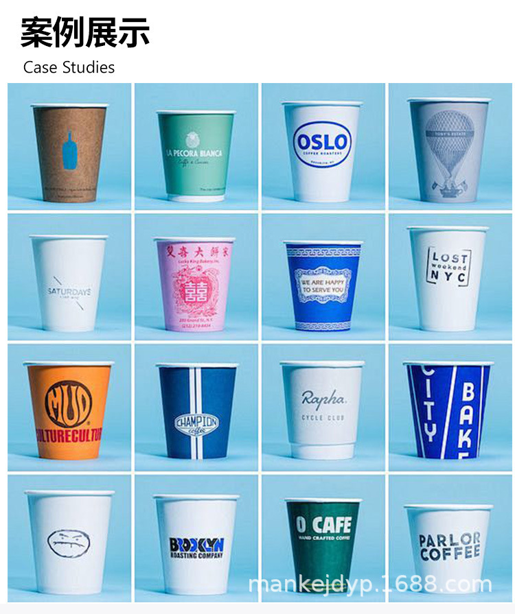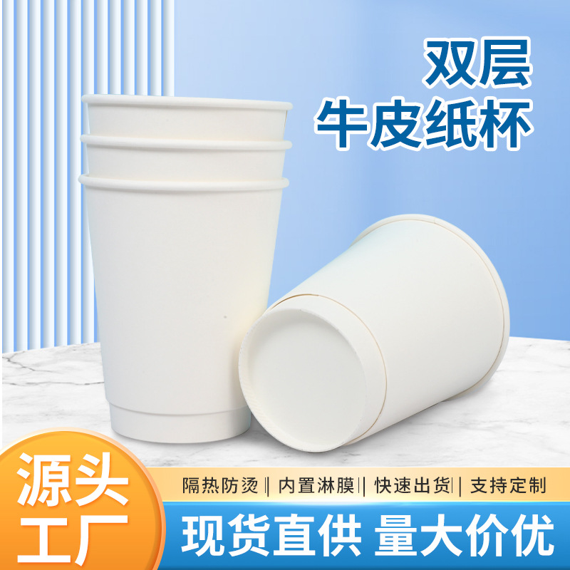 加厚中空双层纸杯隔热咖啡奶茶热饮纸杯100/280/400/500ml批发