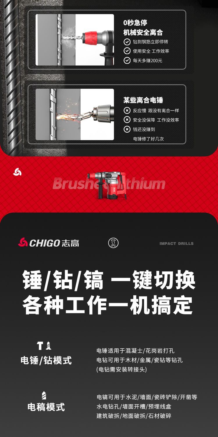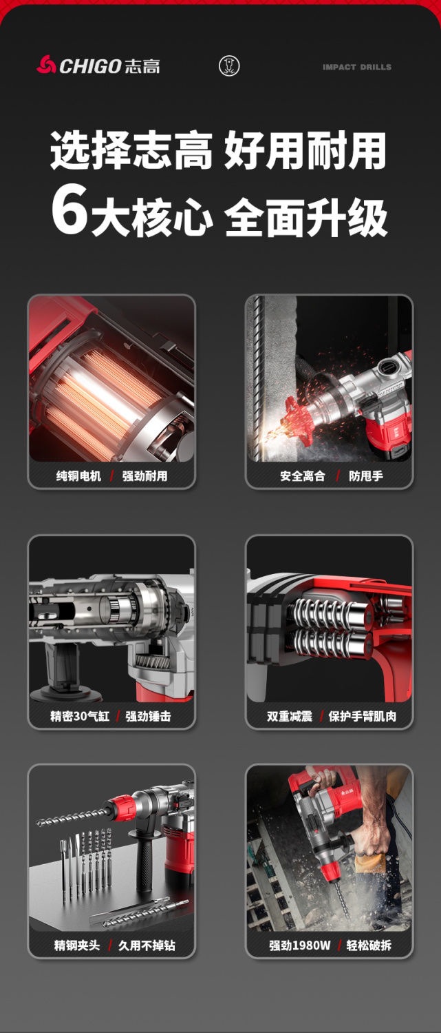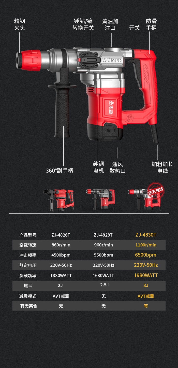 志高ハンマー電気両用大出力工業多機能衝撃ドリルコンクリート電気ドリル電動工具家庭用