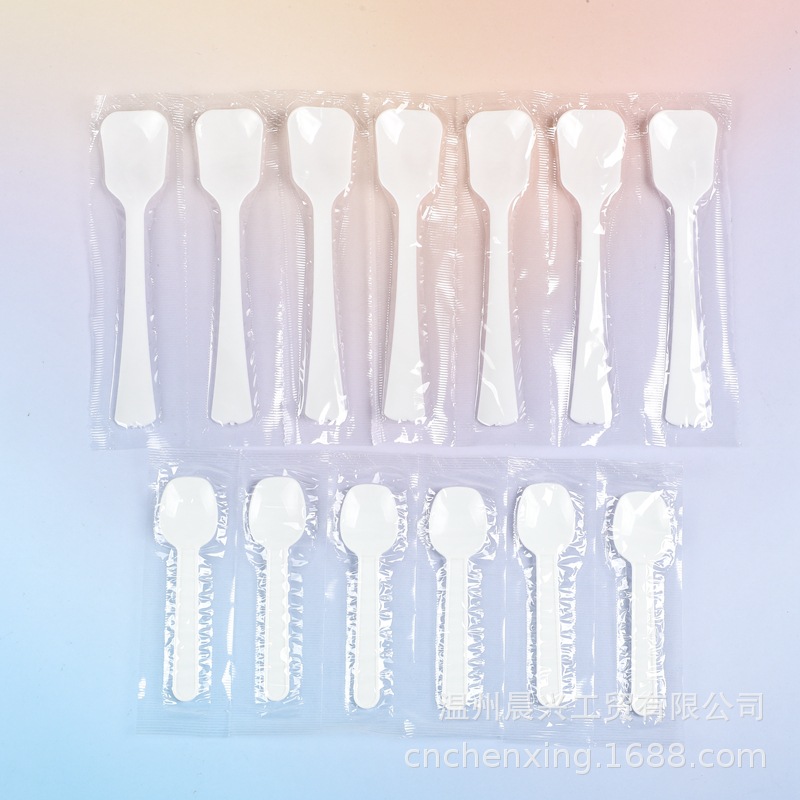 使い捨てアイスクリームスプーン、ヨーグルトスプーン、アイスクリームスプーン、デザートスプーン、白いプラスチック製のテイスティングスプーン、個別包装