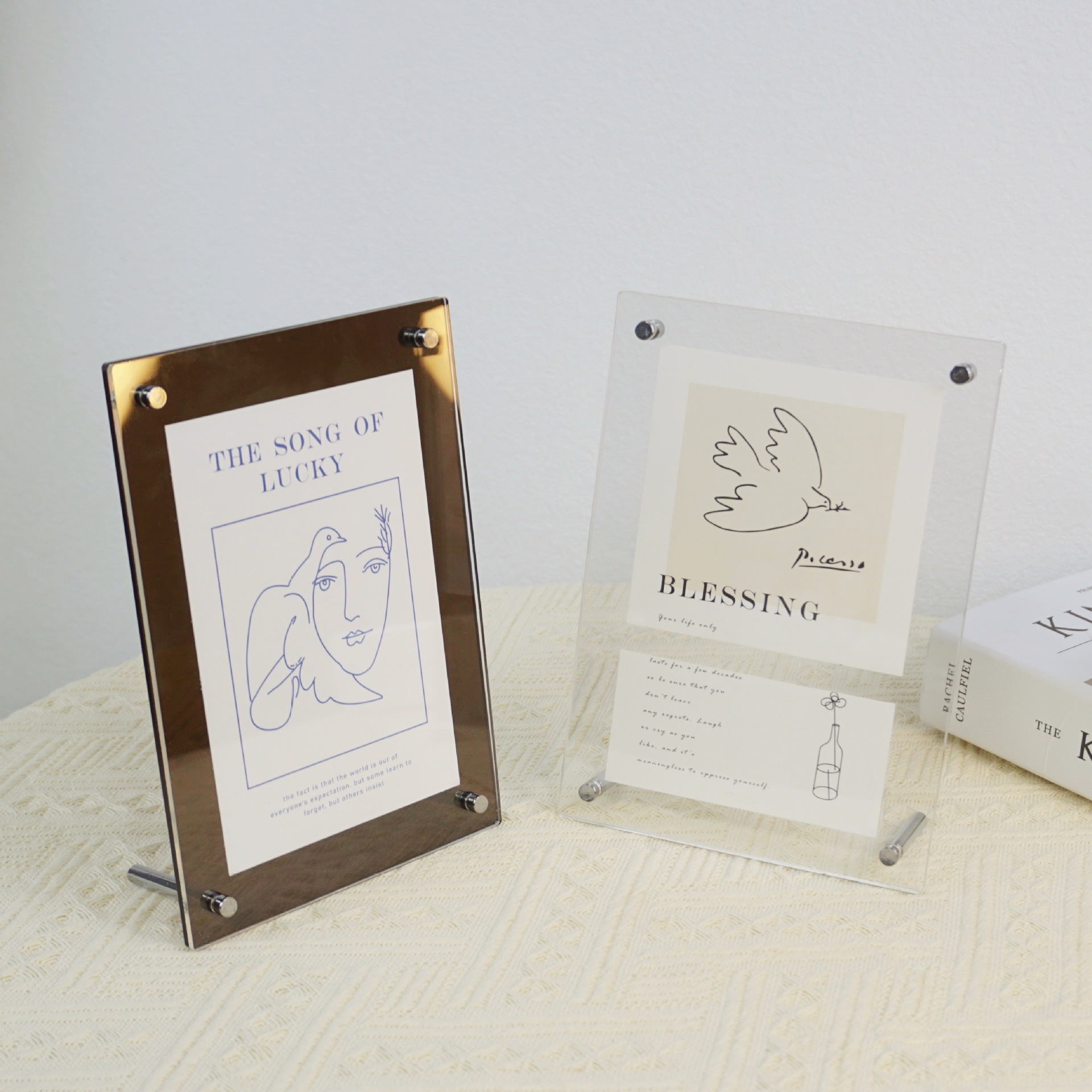 アクリルのフォトフレームには、6インチのシンプルなクリエイティブなフォトフレームのカラー透明なクリスタルのフレームがありません