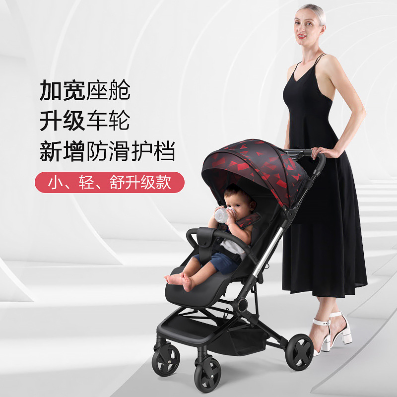 神馬は軽くて広いベビーカーを持っています。高い景観は簡単に折りたたみます。