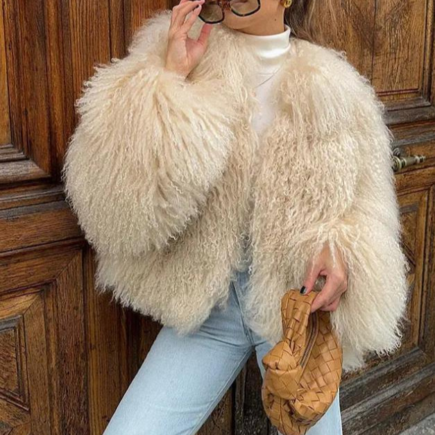 国境を越えた欧米秋冬の新型保温人工毛毛皮コート女性の短いビーチ羊の長い毛の街頭カーディガンジャケット