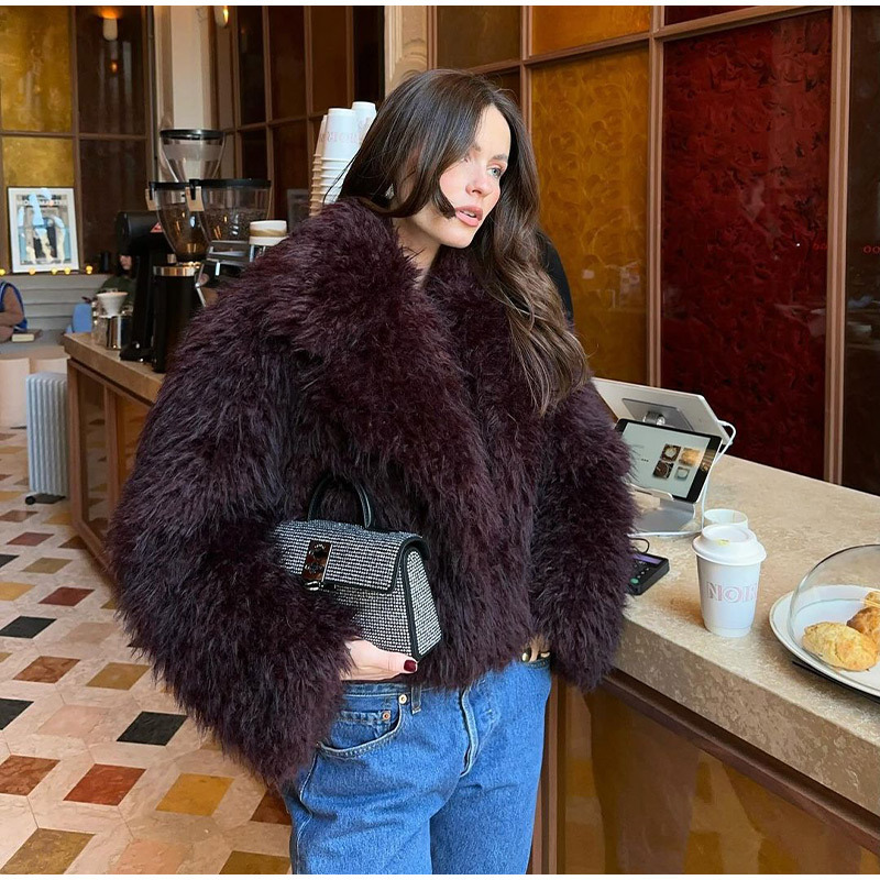 気質の優雅な純色の短い毛皮のコート欧米のクロスボーダーの2024ファッションの女性の冬の保温の長袖のコート