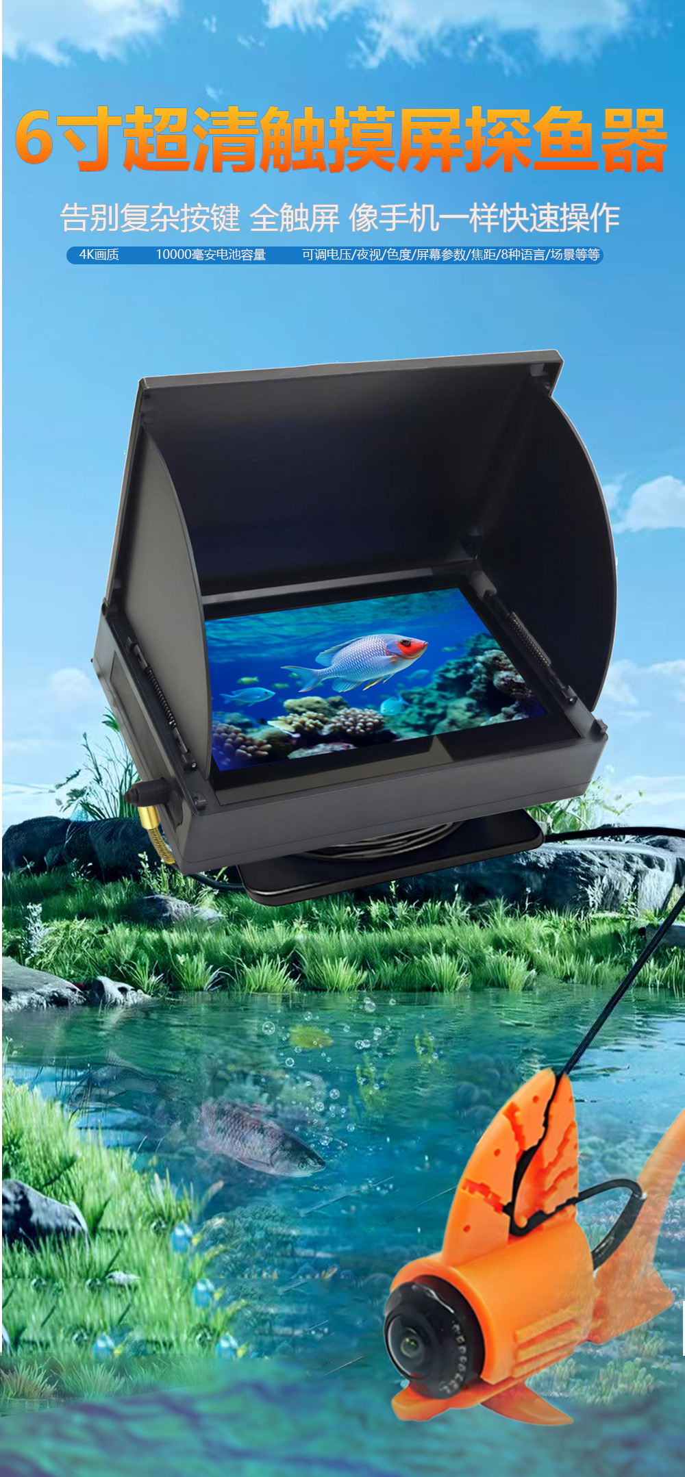高清探鱼器水下相机摄像头2025新款可视锚鱼探头钓鱼水底看鱼夜视