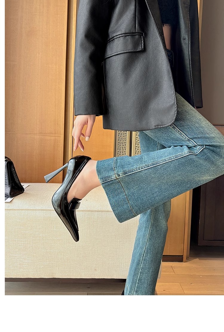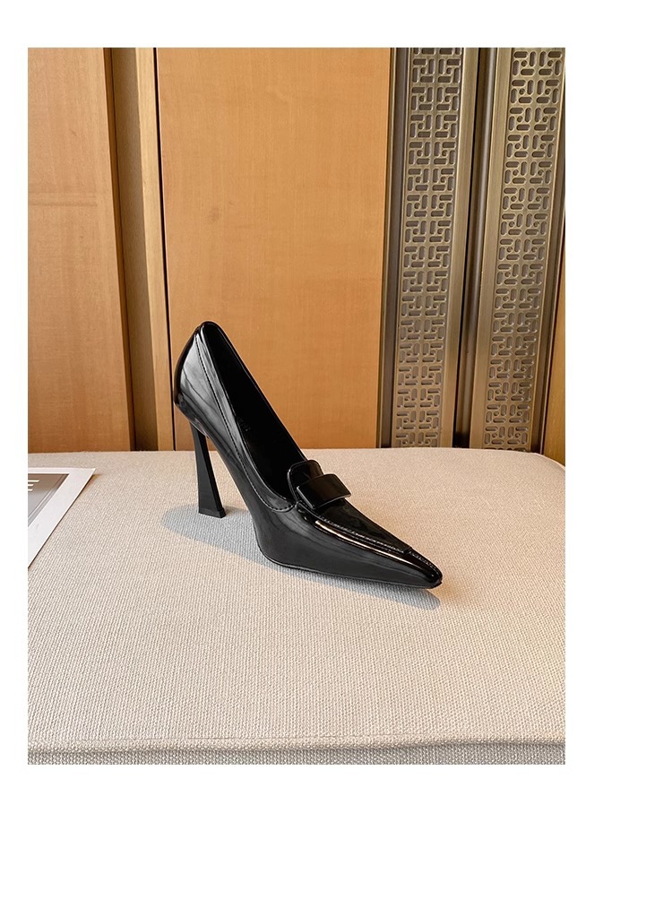 2025新型レトロの先のお姉さんの気質の靴の女性の黒色の通勤の細いかかとの漆の皮のフランスのハイヒールの女性