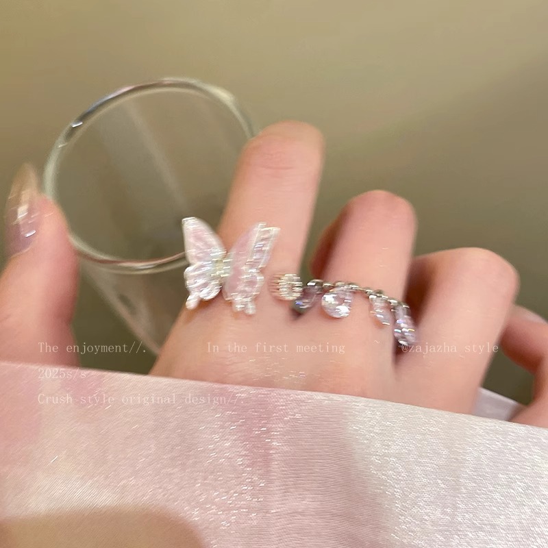 スーパーフェアリーカラージルコンバタフライリング女性のハイエンドオープン調節可能なリングライト高級ニッチデザイン人差し指リング
