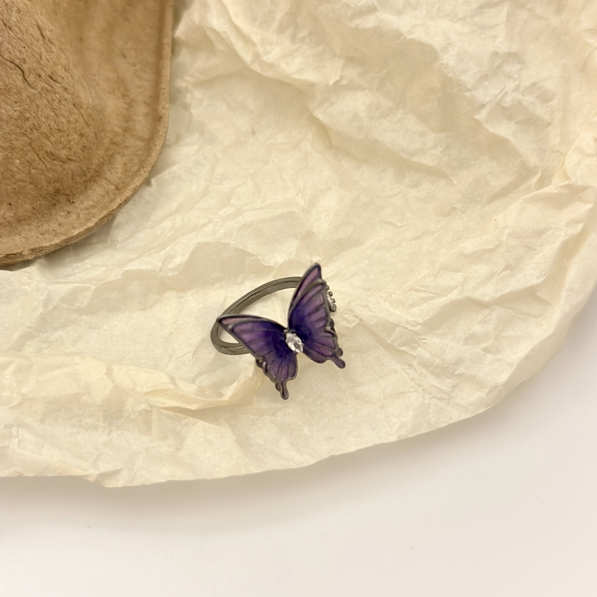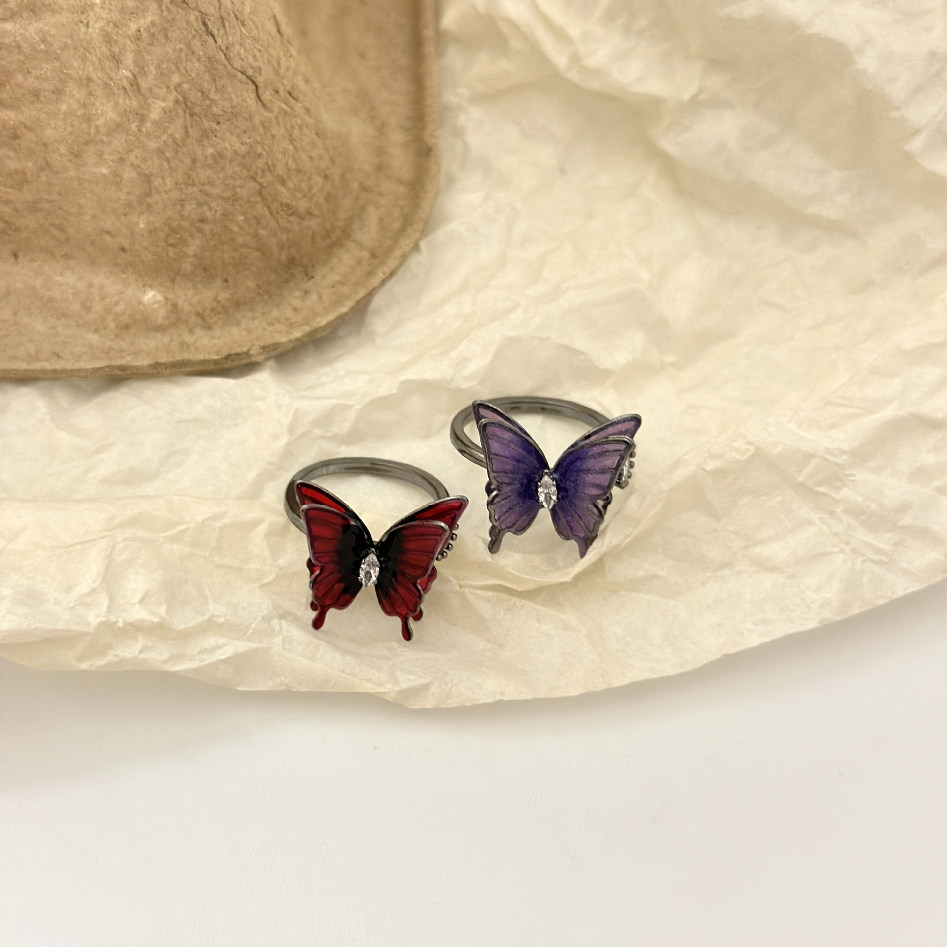 超仙カラー蝶ジルコン開口指輪女性大衆デザイン食指戒軽贅沢高級感夏指環潮