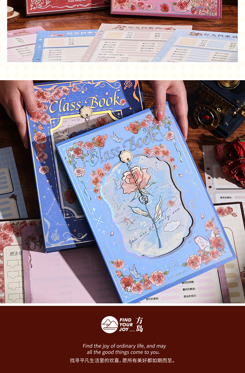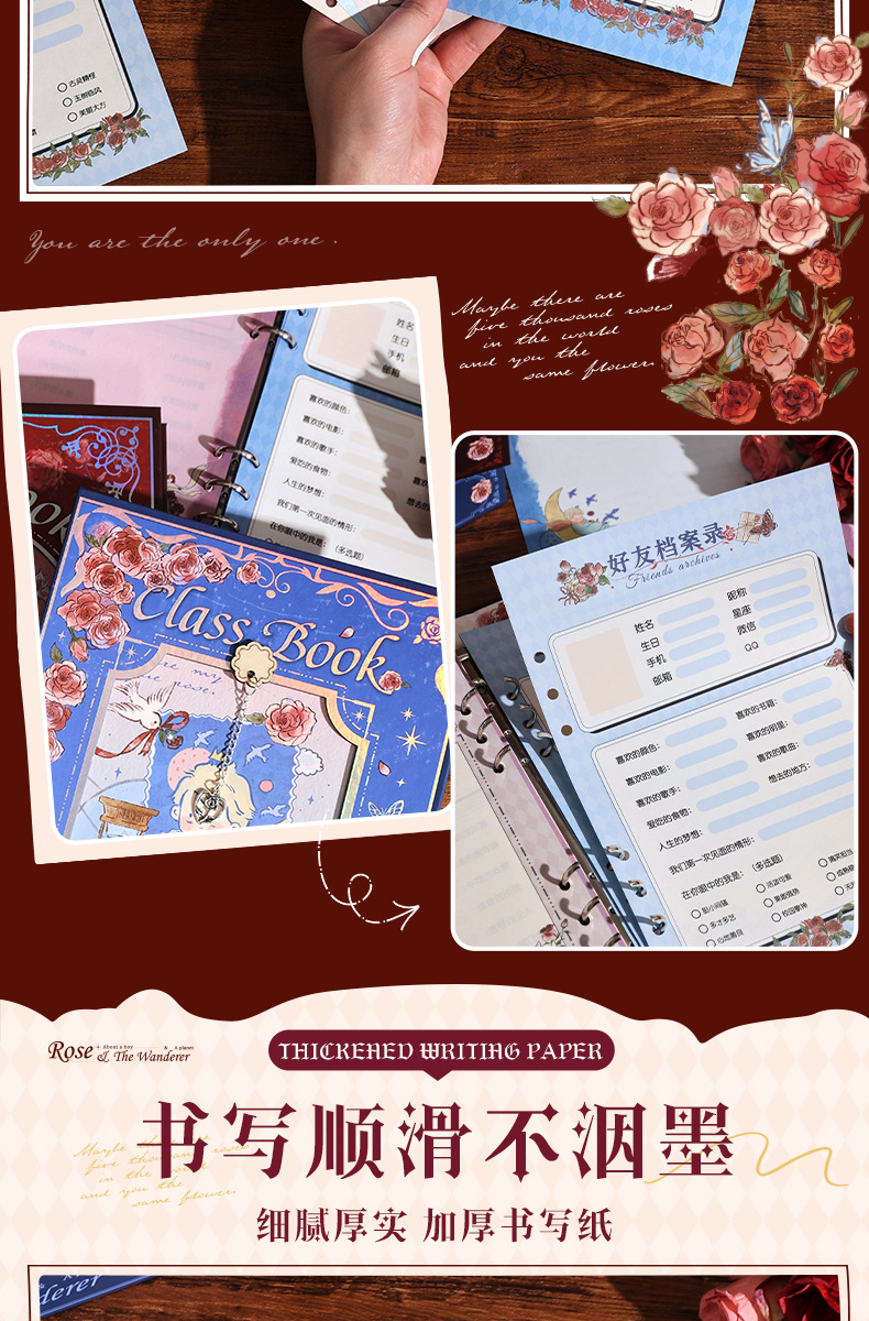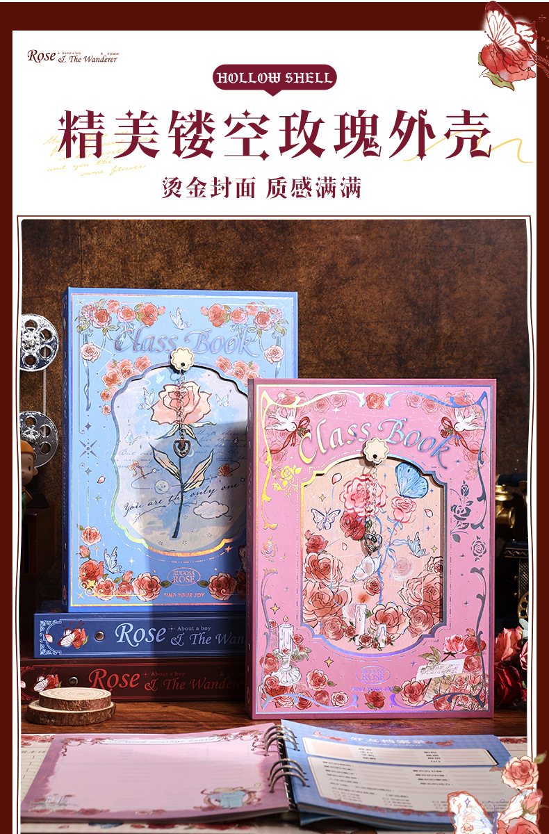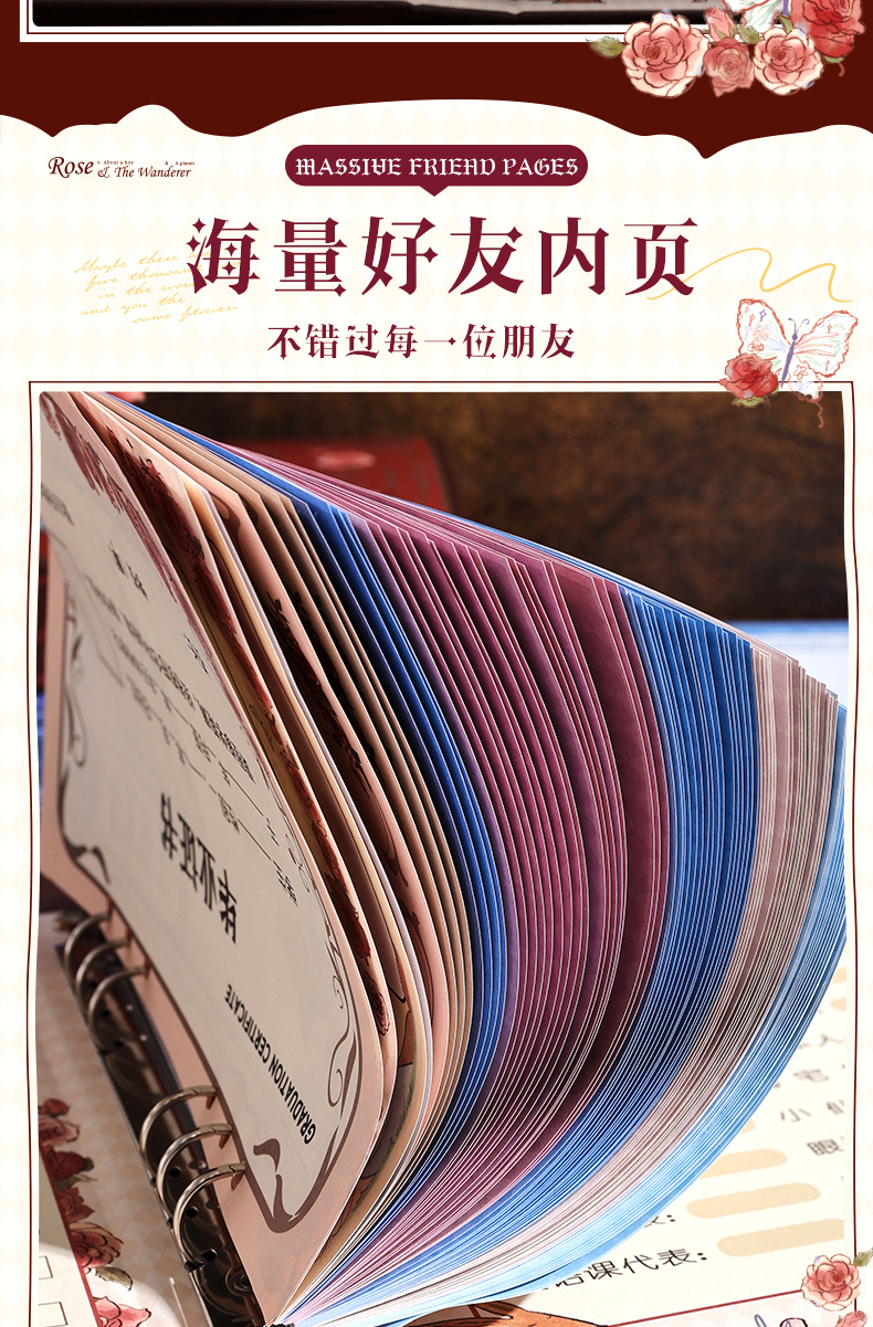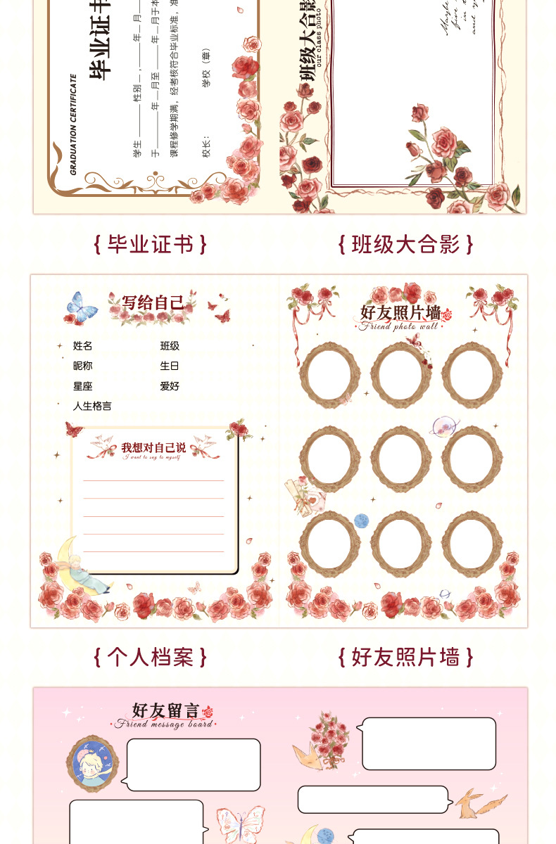 方島の放浪者とバラのシリーズの復古的で精巧で美しい卒業記念帳は取り外し可能です。