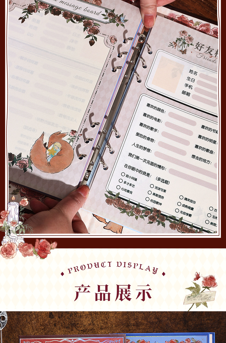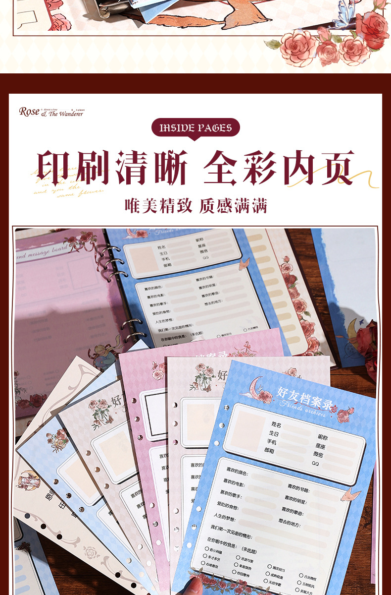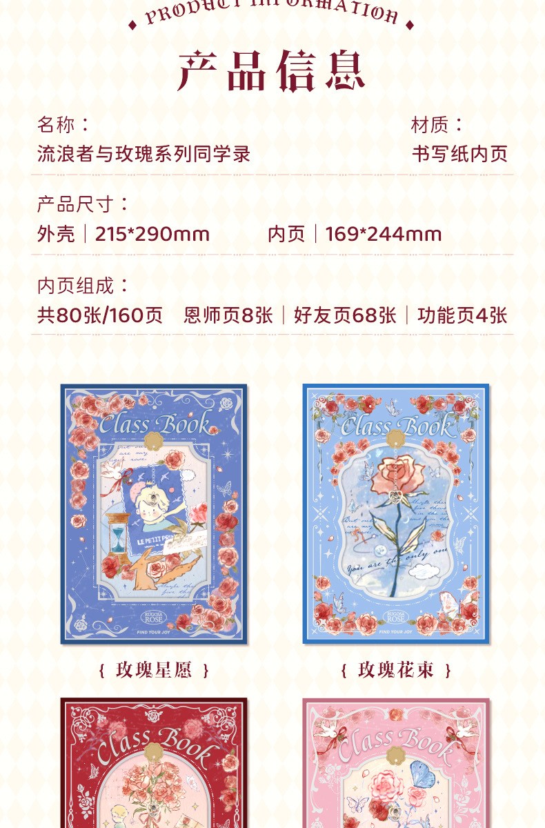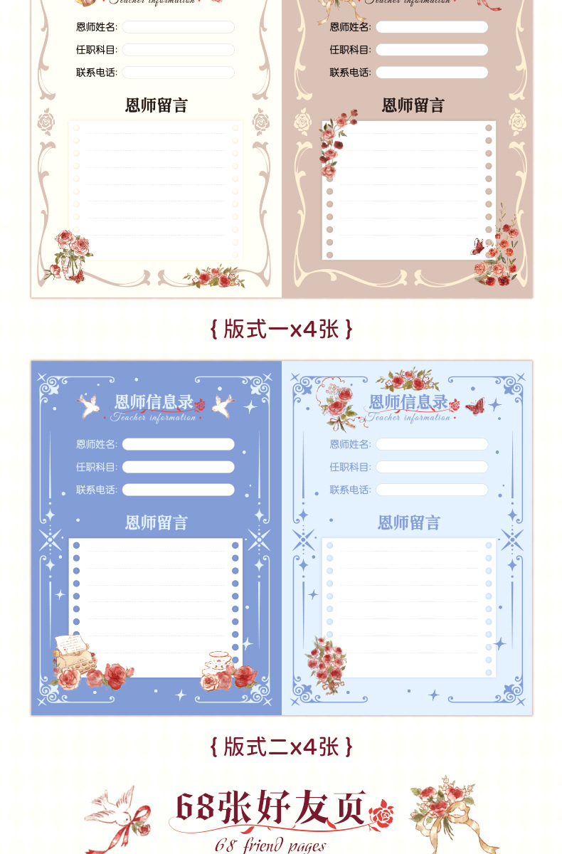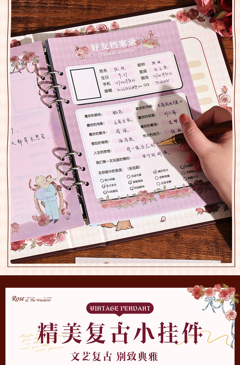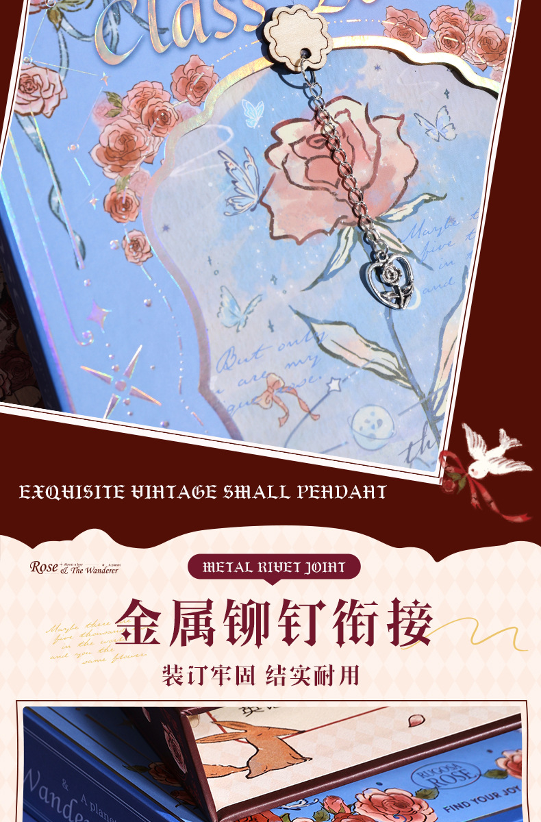 方島の放浪者とバラのシリーズの復古的で精巧で美しい卒業記念帳は取り外し可能です。