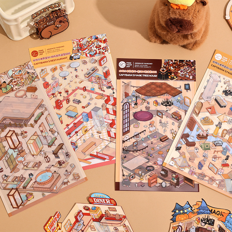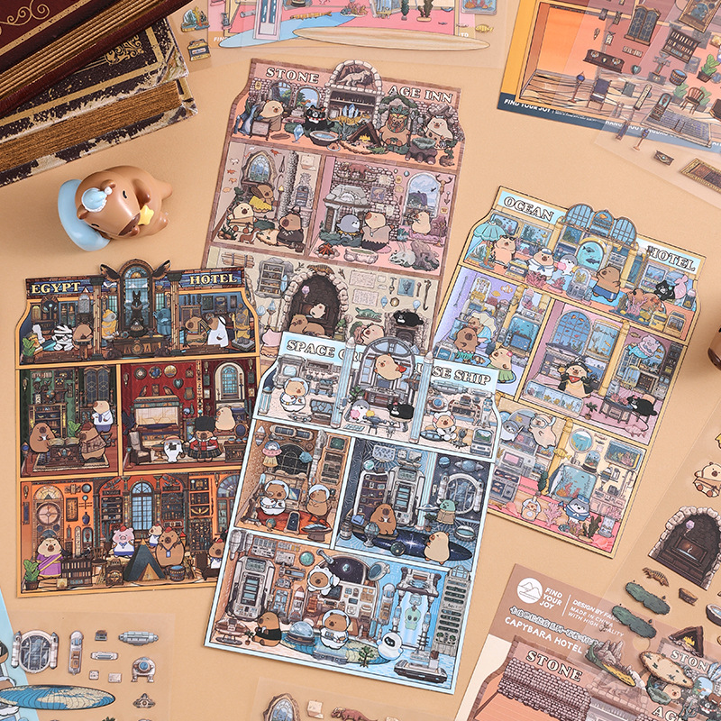 Fangdao カピバラホテルシリーズ新しいペット立体 3D ミニチュアシーンステッカー diy 楽しいレジャーステッカー卸売