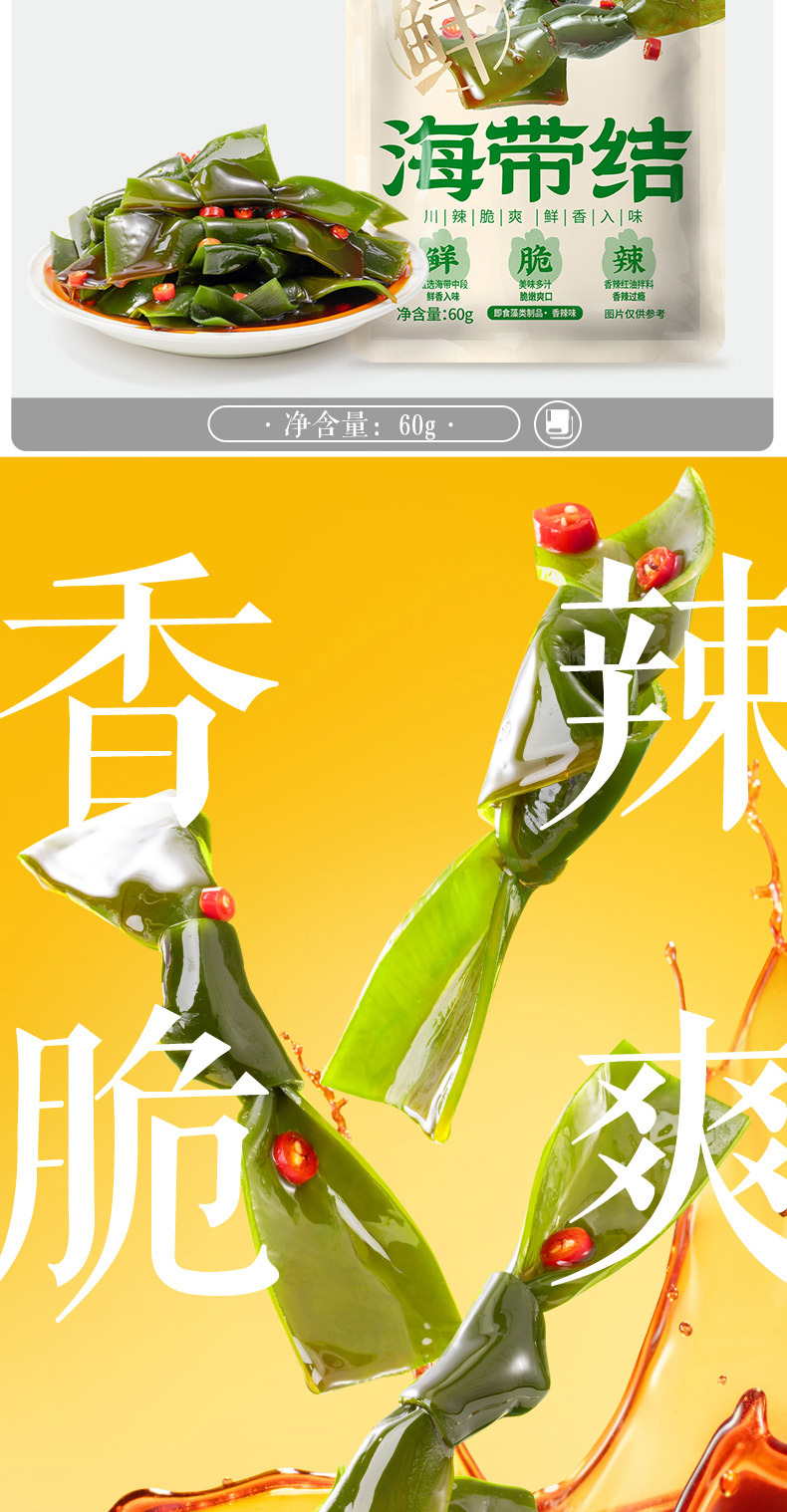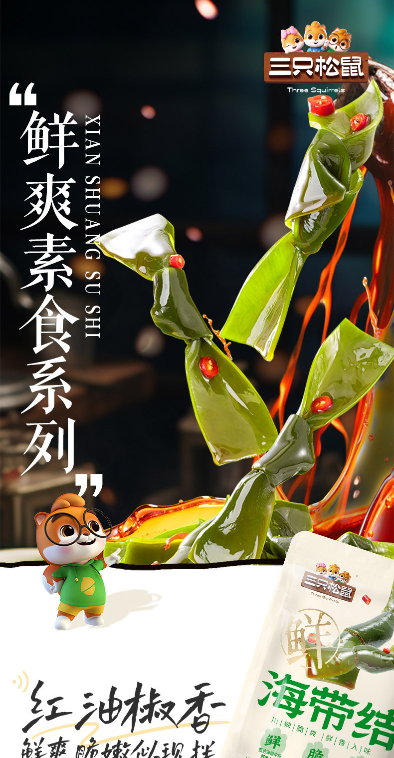 【三匹のリスの昆布結び60g/袋】辛いお菓子は袋を開けて食いしん坊のわかめを食べます。