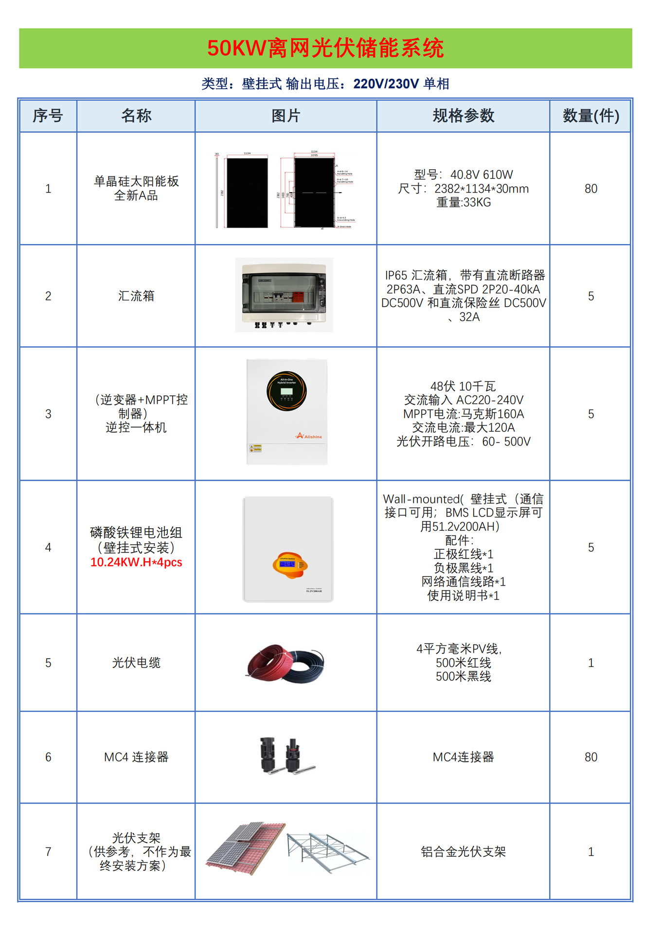 厂家专供5-60KW家庭储能电池离网太阳能发电系统家用220v光伏全套