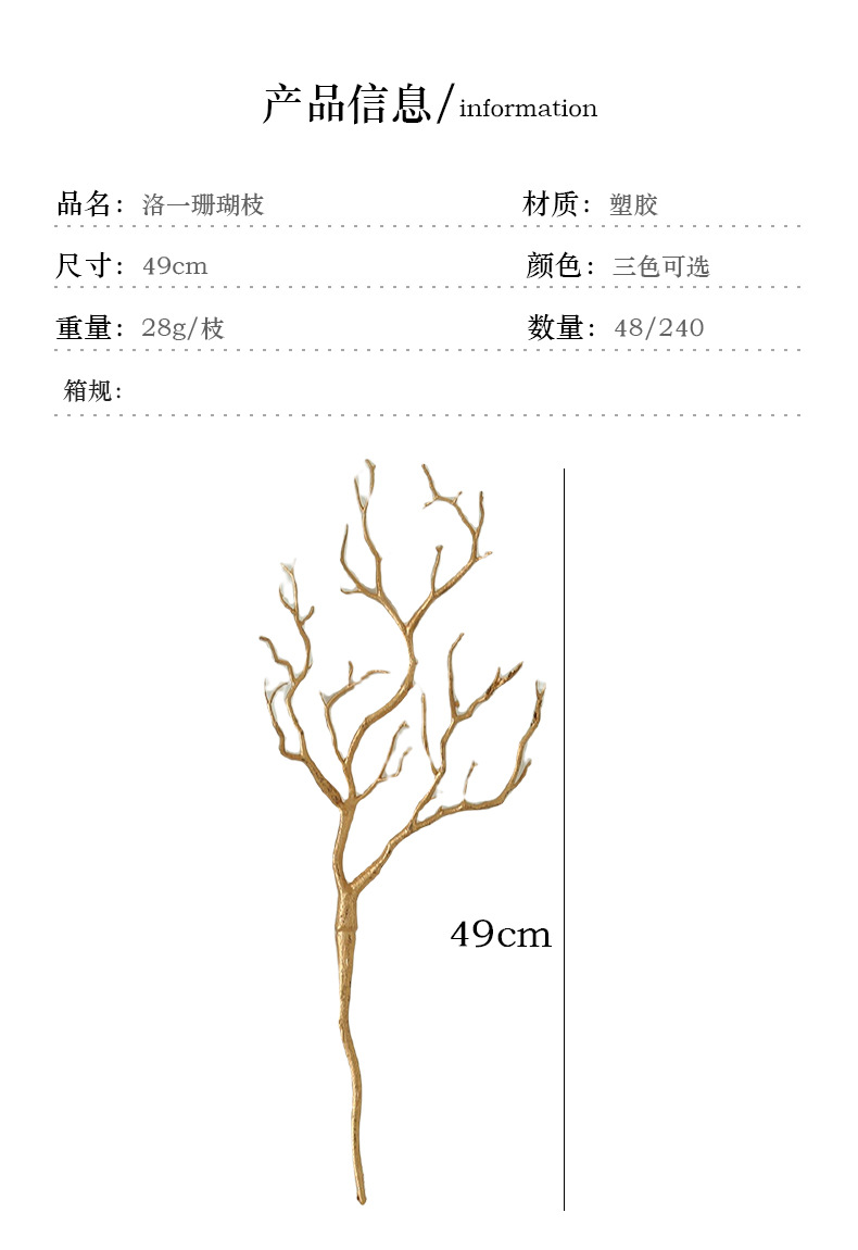 珊瑚枝仿真花塑料花枝手工枯枝仿真小树枝鹿角珊瑚枝场景布置假花