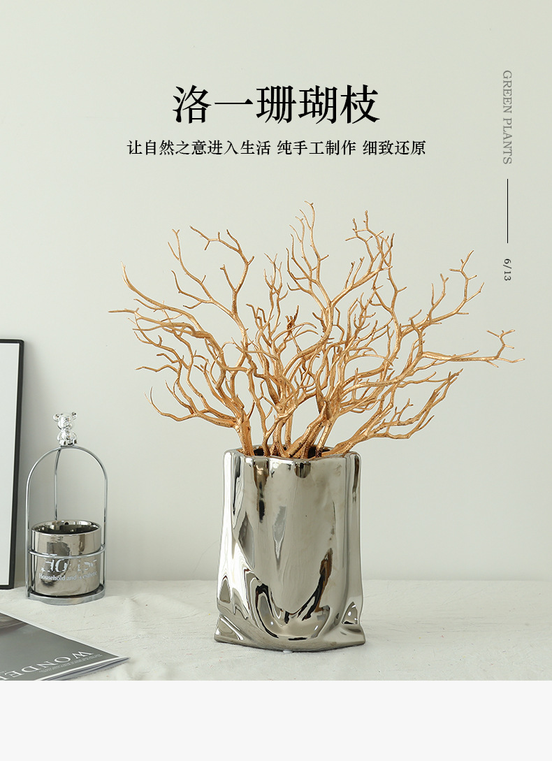 珊瑚枝手感乳胶枯枝假花家居婚庆造景装饰摆件高级感仿真花绿植