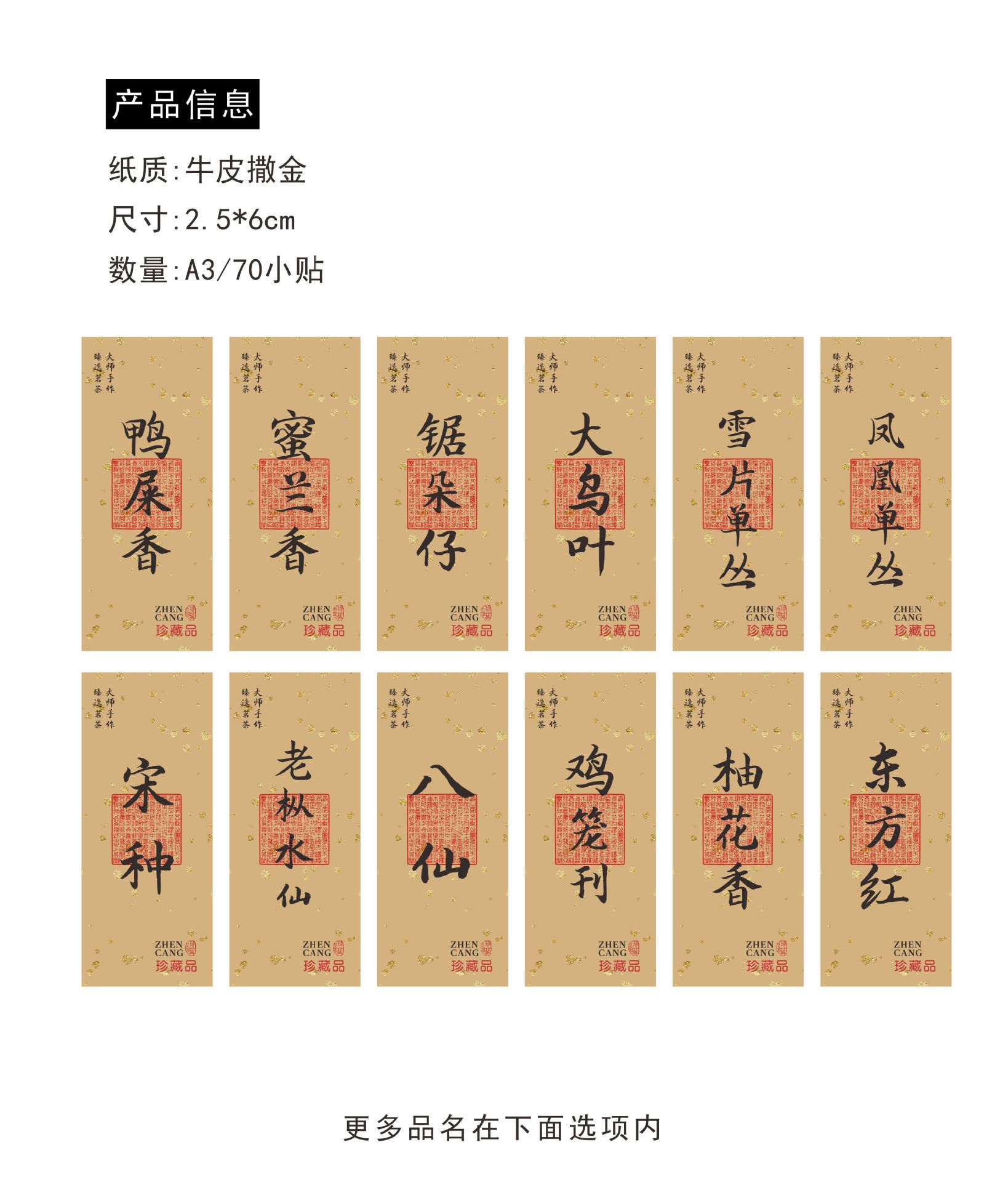 特殊紙金色通用茶葉不乾性ラベル単叢大紅衣茶名は93枚/部に変更できる