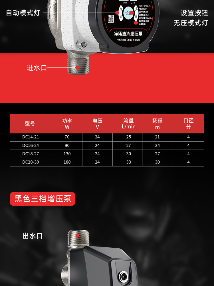 小型家庭用24V全自動加圧ポンプ、太陽熱温水器加圧ポンプ、水道管ポンプ