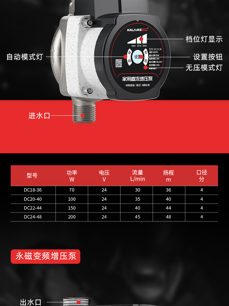 24V直流知能加圧ポンプ家庭用蛇口増圧ポンプ給湯器加圧ポンプ永久磁石定電圧ポンプ