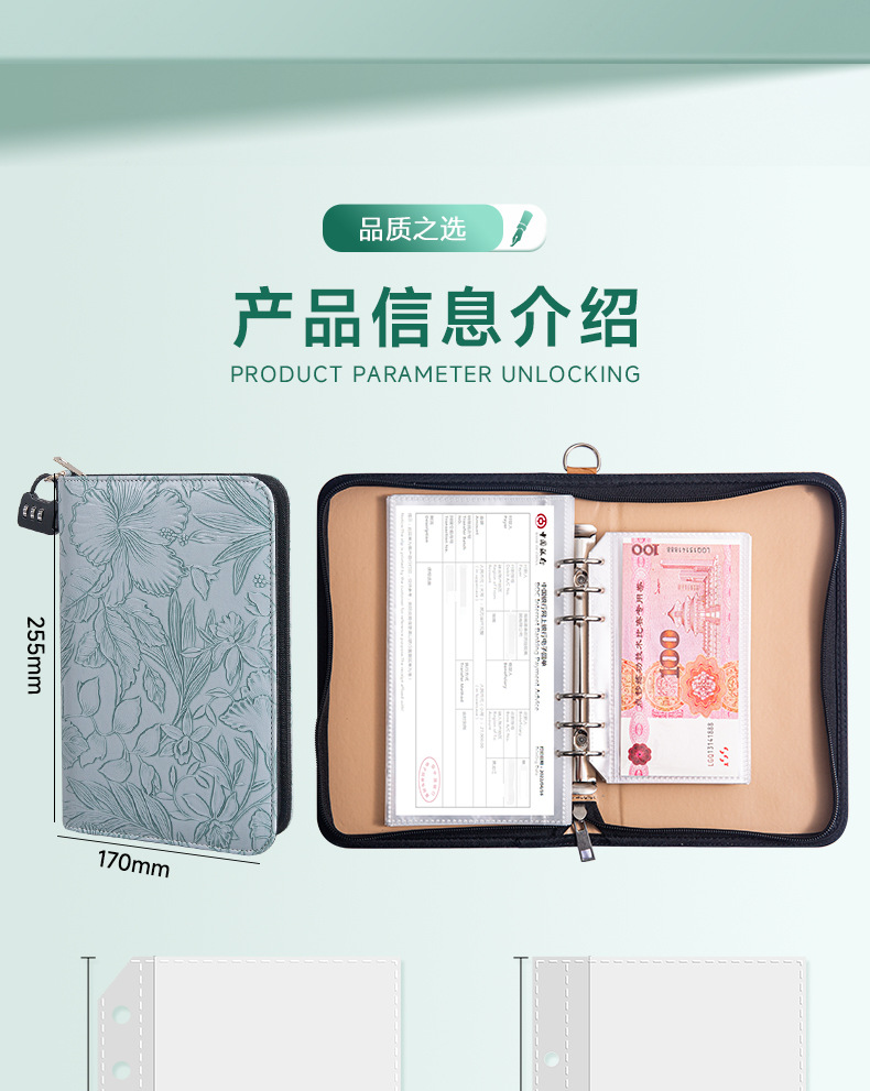 パスワードロック付きエンボスジッパーバッグ、大容量現金記念紙幣、人民元紙幣収納ブック、マネーブック