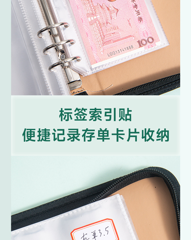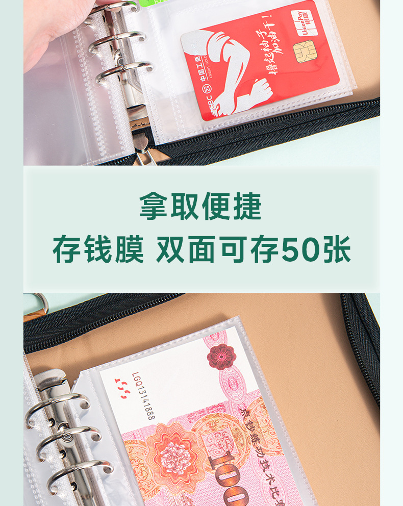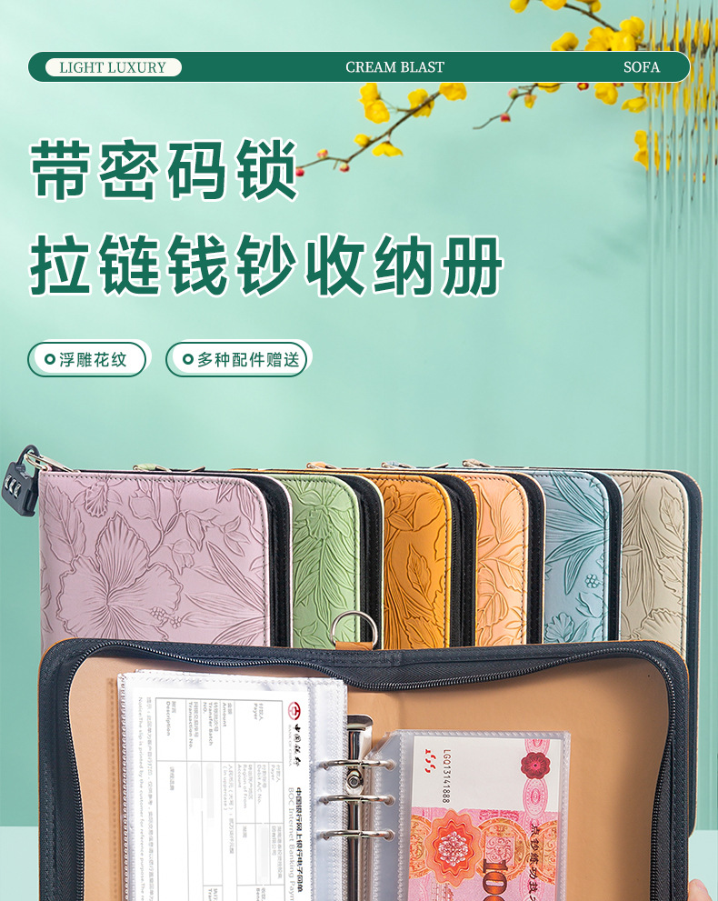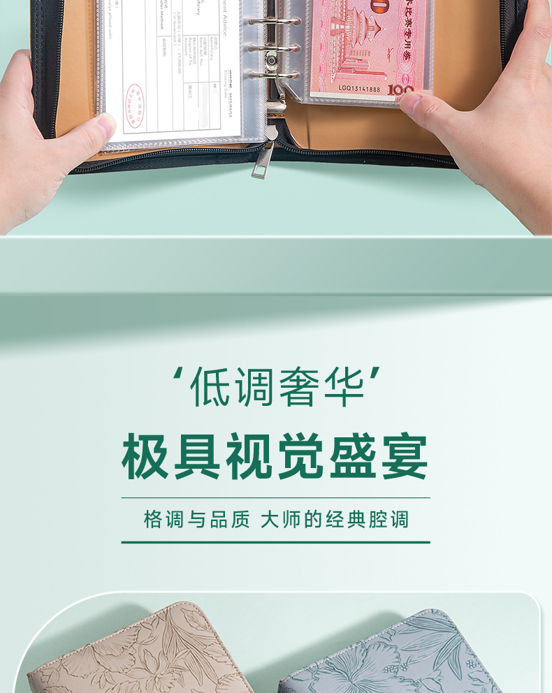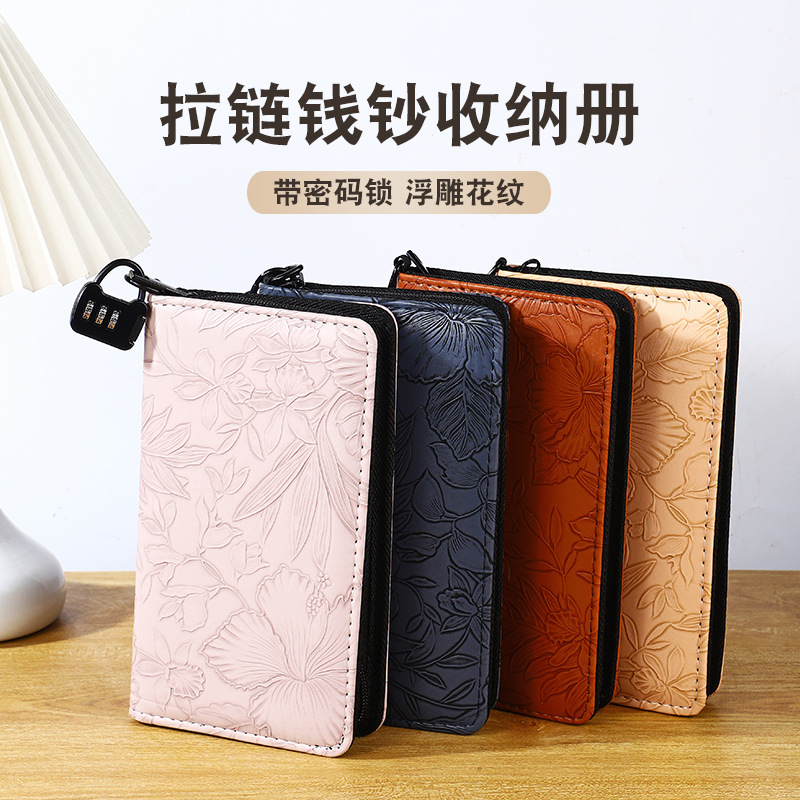 现金存钱本大容量理财拉链包存钱夹收纳册攒钱本浮雕收纳册多功能