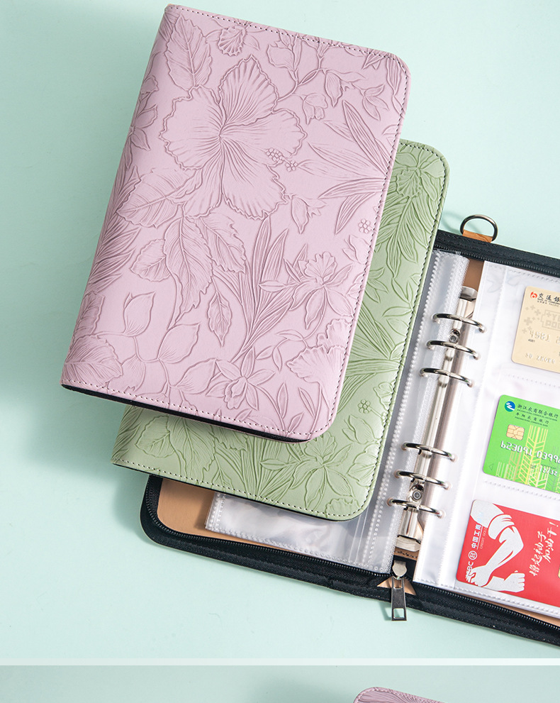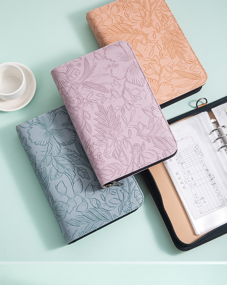 クリエイティブな豹柄手帳 A6 財務管理ノート ルーズリーフ キャッシュ予算 マカロンノート ジッパーバッグ メモ帳