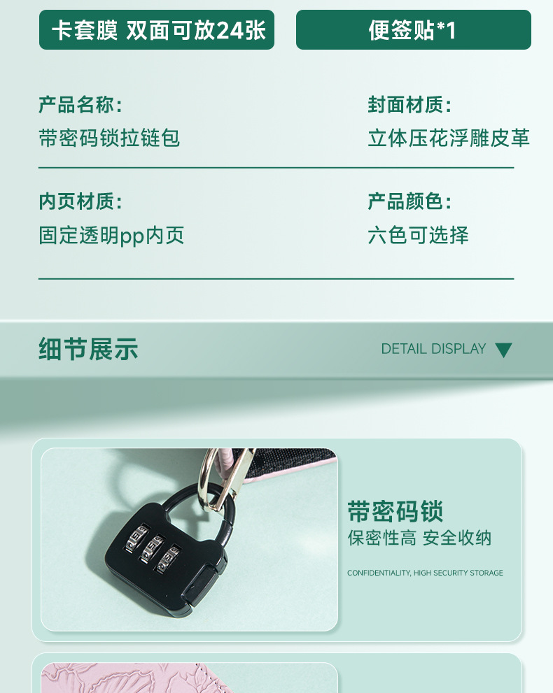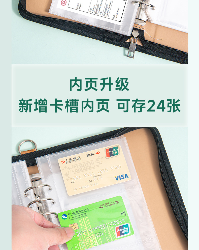 密码锁拉链存单夹票据银行定期活期收纳册存折本大容量存单收集册