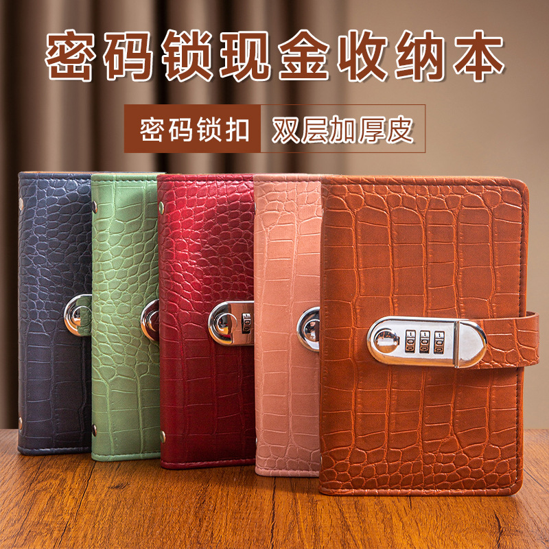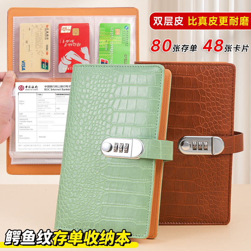 新しいワニ柄財務管理通帳クリップ紙幣収納多目的パスワードロック小切手収納ブック卸売