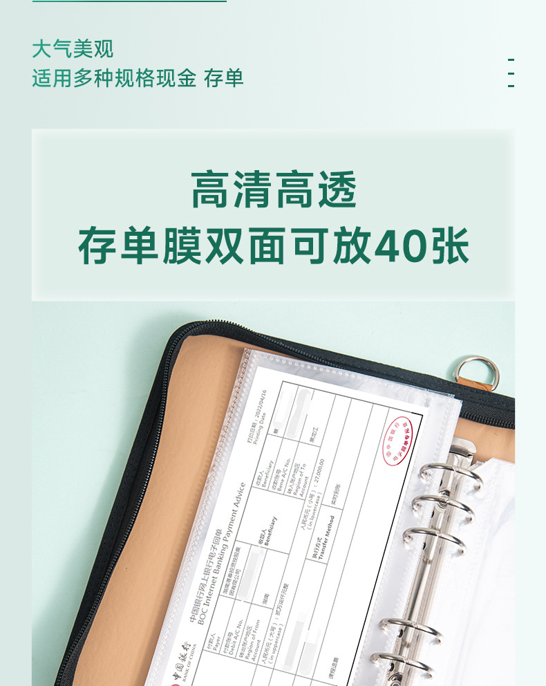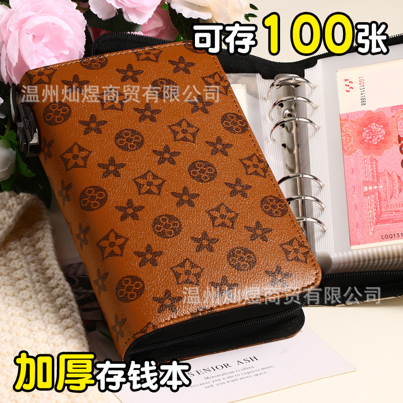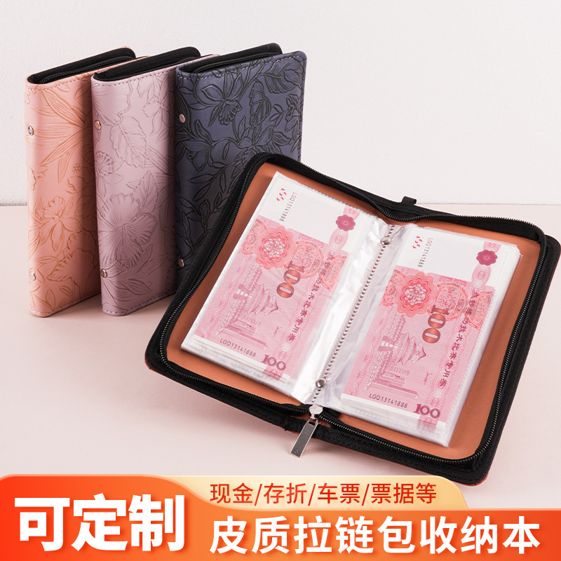老花拉链款现金存钱本活页内页现金收纳纪念钞存钱夹钱册纸币收纳