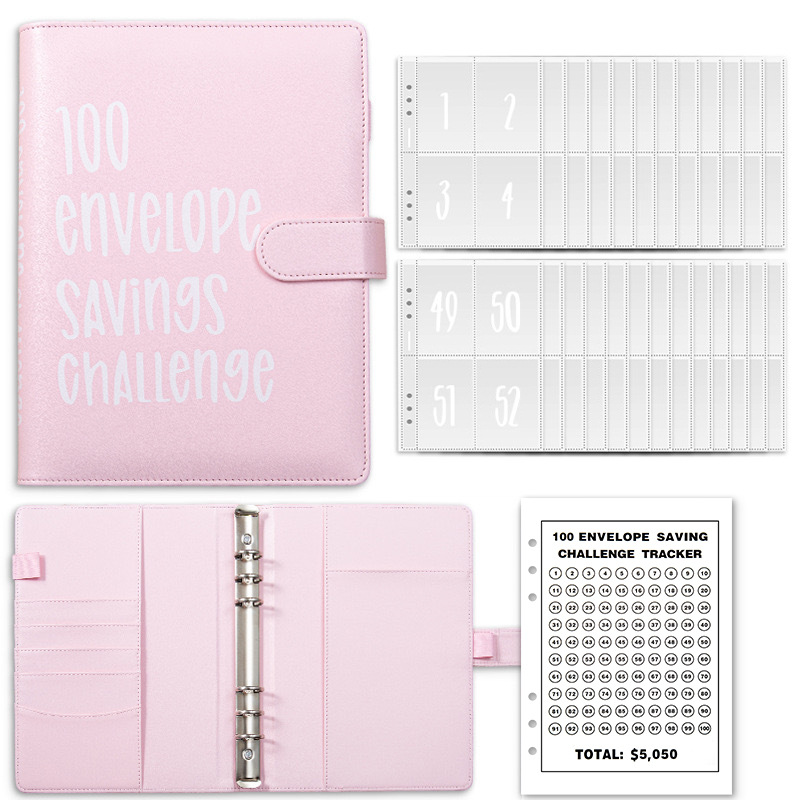 2025 現金貯金帳 ジッパー付きルーズリーフブック 貯金財布 大容量紙幣 ネットセレブ 財務管理収納袋