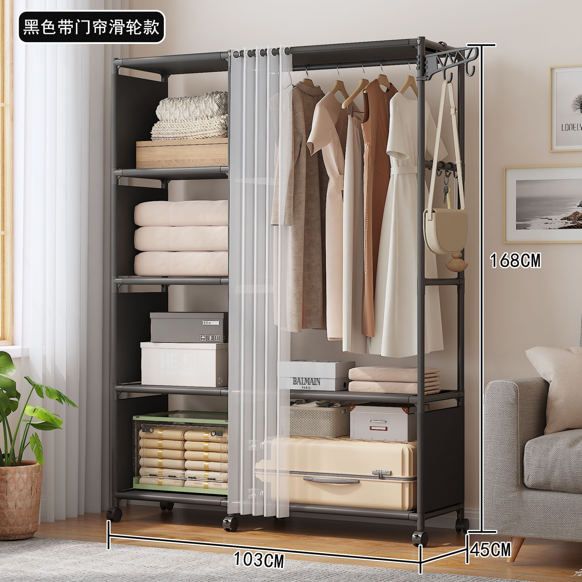 シンプルな衣類ラック、多機能収納、衣類ハンガー、家庭用寝室、頑丈なワードローブ、床置き防塵衣類ハンガー
