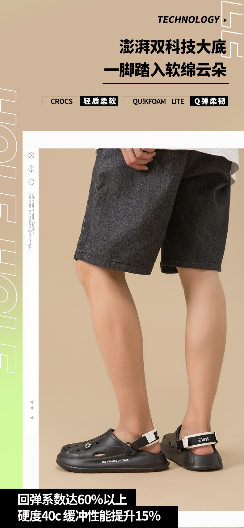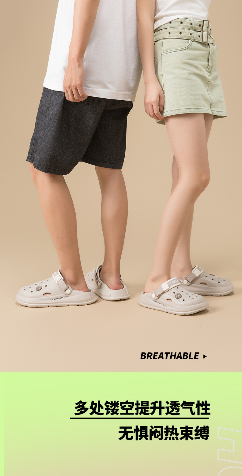 女性が男性の夏用滑り止めサンダルを履く、夏用の新しい包頭2024穴感覚2