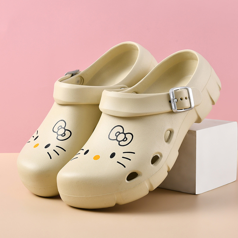 クロスボーダー 2025 新しい厚い滑り止め底キティ猫ホールレディースシューズかわいい包頭多用途速乾性ナーススリッパ