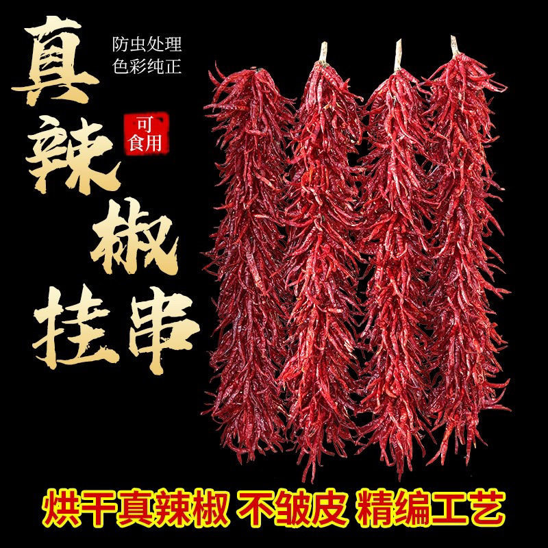 天然辣椒串挂件农家乐火锅装饰辣椒影视道具挂饰手工编制红辣椒串
