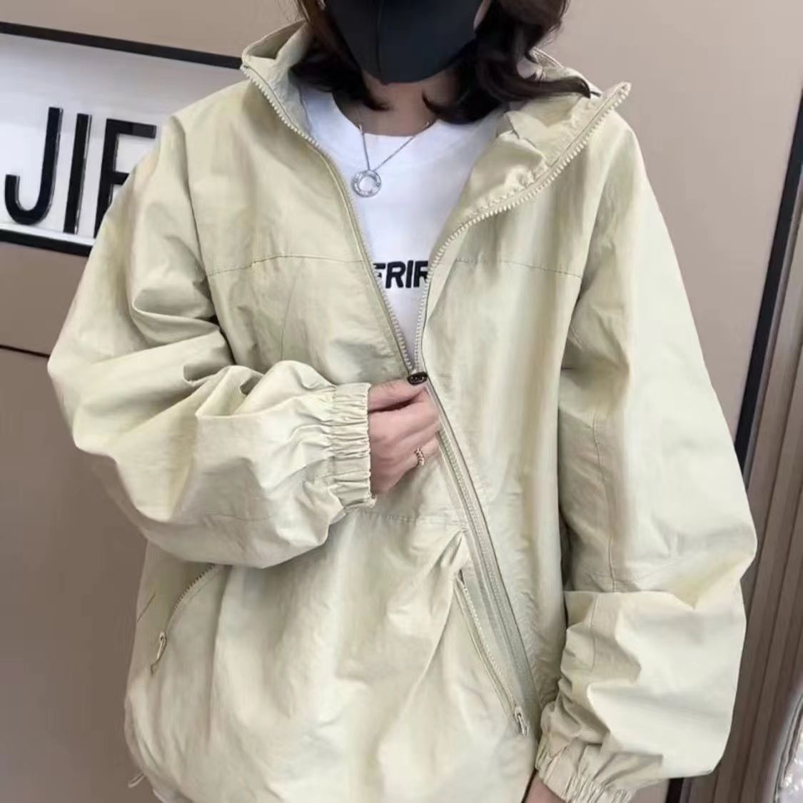 爆款2025年新款冲锋衣女工装连帽百搭春秋款休闲显瘦宽松夹克风衣
