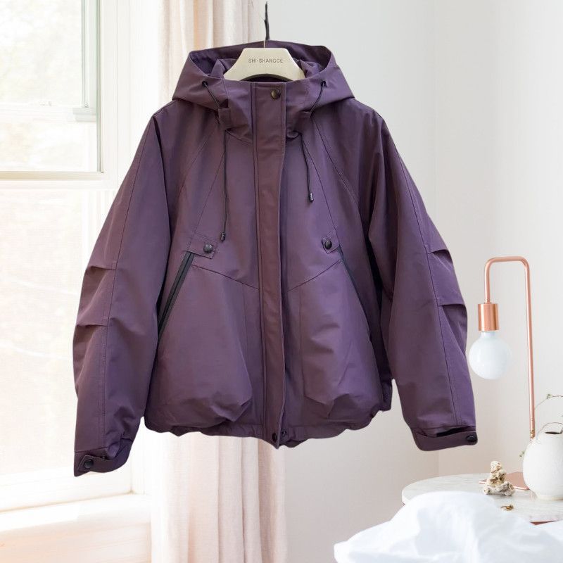 春秋季2025年新款冲锋衣外套女短外套设计感连帽潮酷小个子上衣女