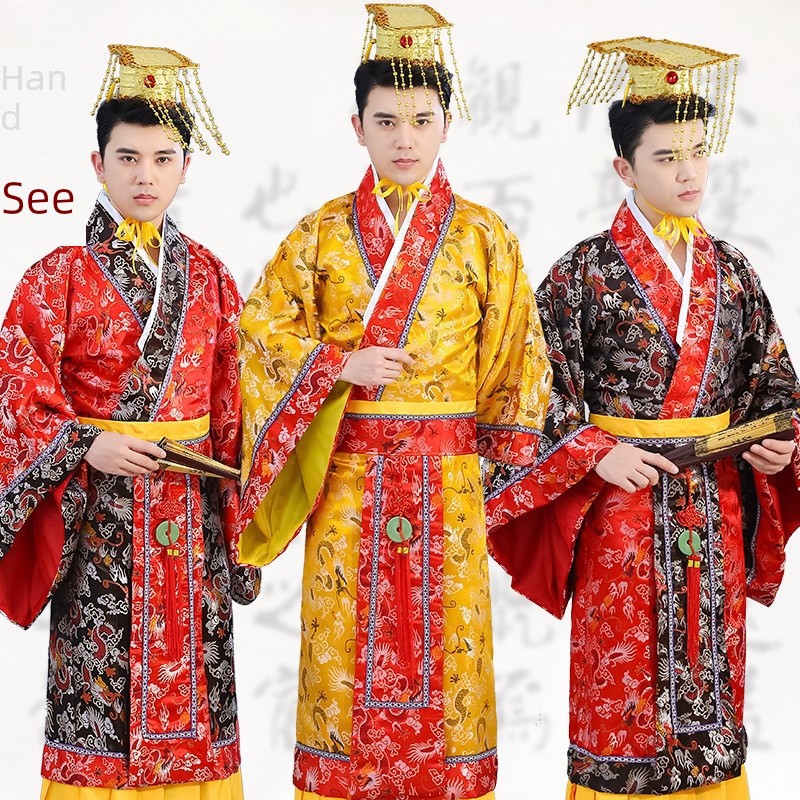 新商品の時代劇は成人の太子服の竜袍の漢の皇帝の上の映画館のテーマの服装の漢服の男装を演じます。
