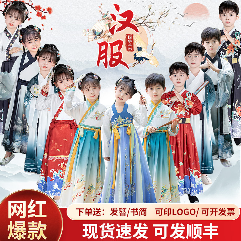 子供の漢服の男の子と女の子の国学の演技服の超仙唐服の中国風春と秋冬の三字経の演出服